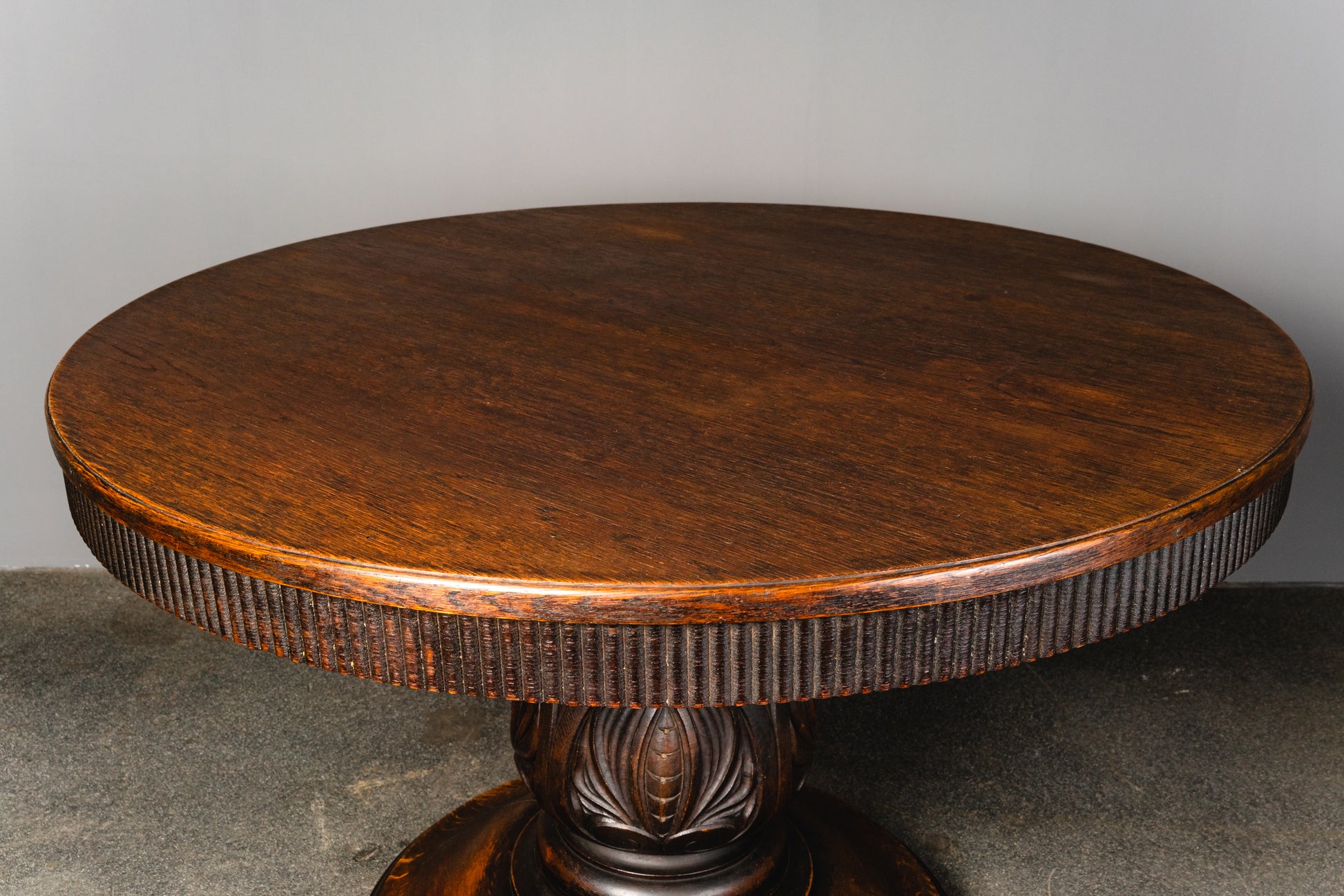 :: eleganter runder Tisch mit ausdrucksstark gedrechseltem Mittelfuß
