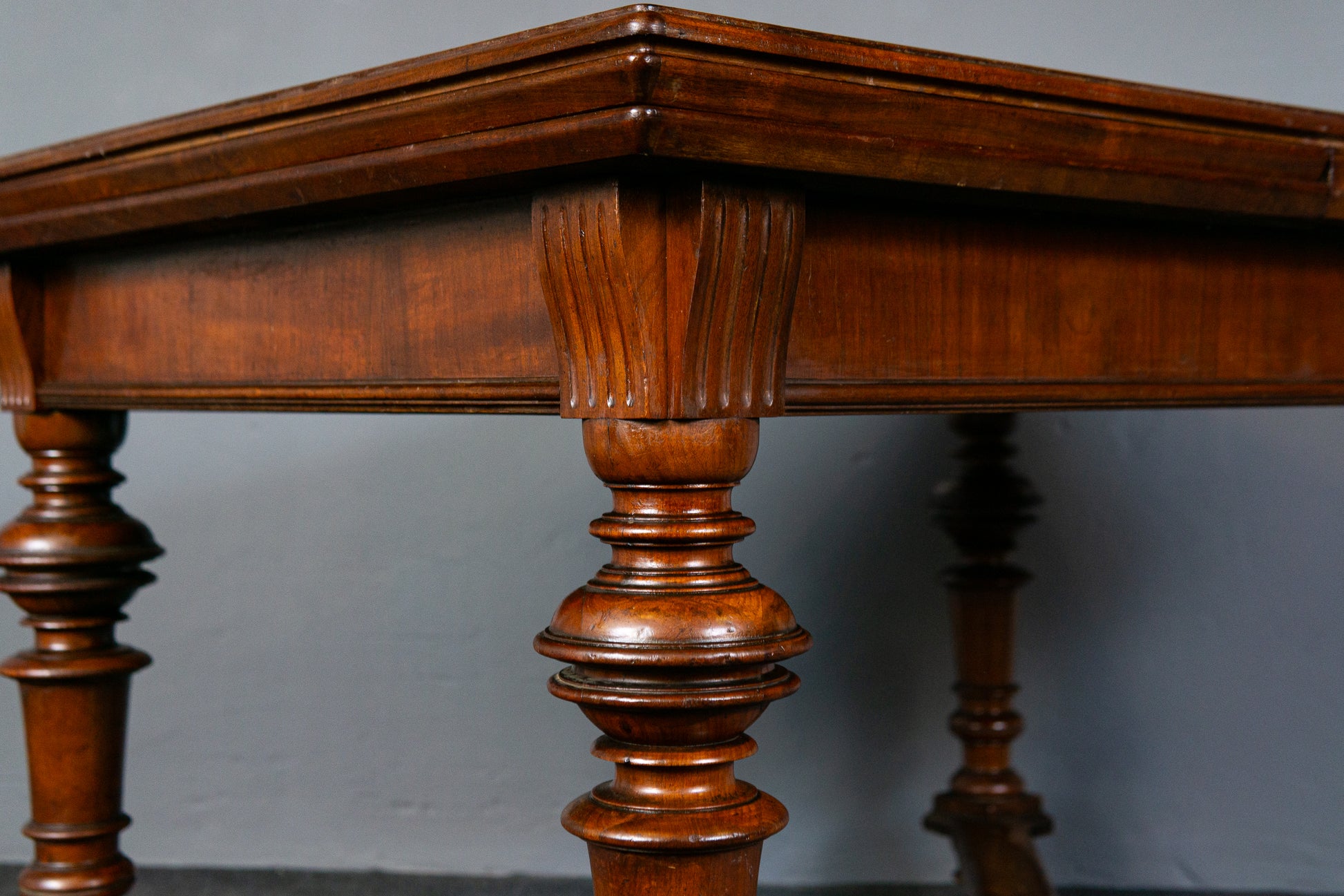 - Unterkonstruktion mit aufwendig gedrechselten Beinen und stabilisierender Kreuzverstrebung