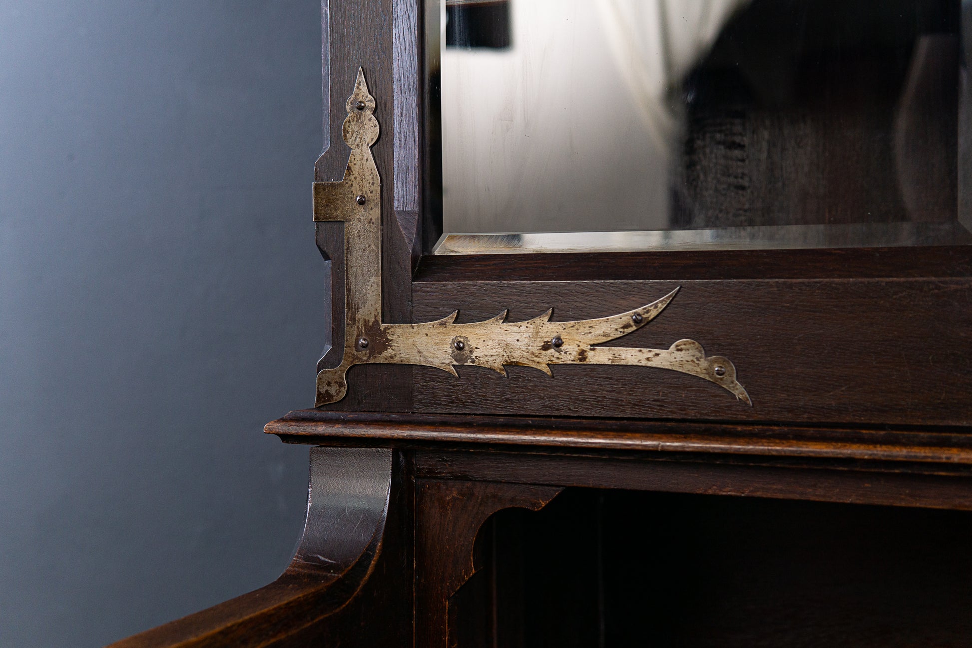 - zweitüriges Oberteil mit facettiertem Glas und Fach mit Spitzbogenausschnitt