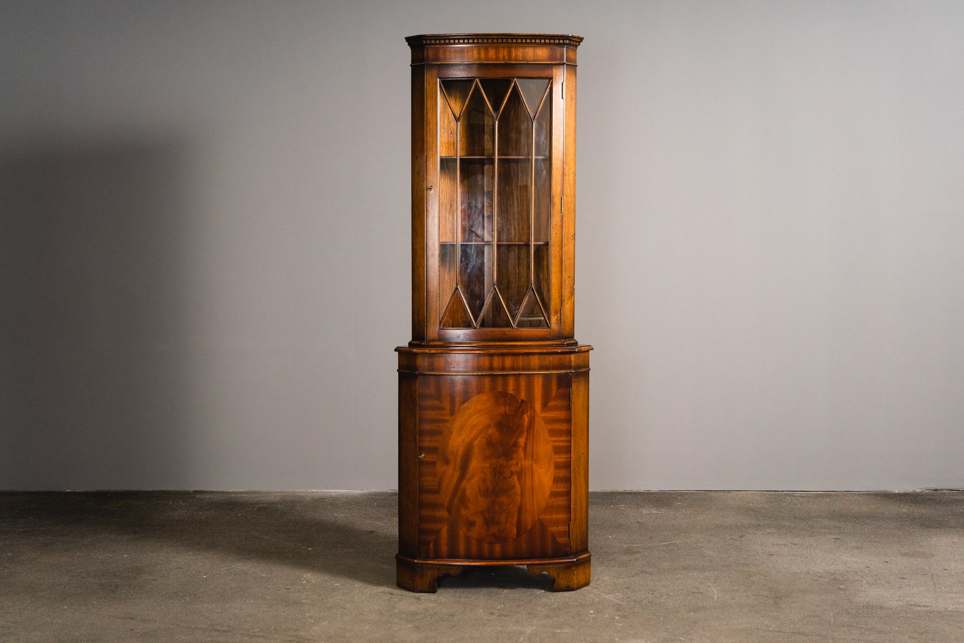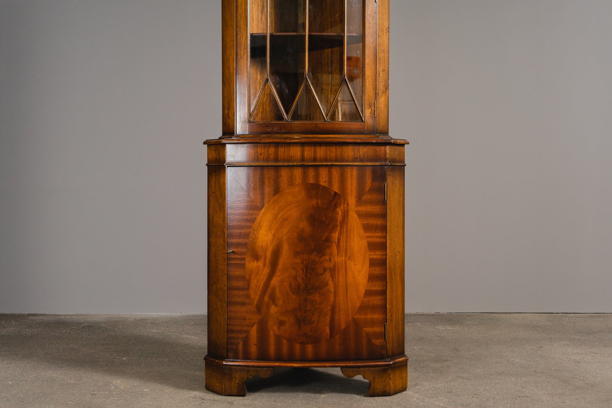 Schöner Eckschrank im Englischen Stil, 2.Hälfte des 20.Jahrhunderts - Vitrine Bücherschrank Schrank Regal Kommode Alt Vintage MÖBLINGER