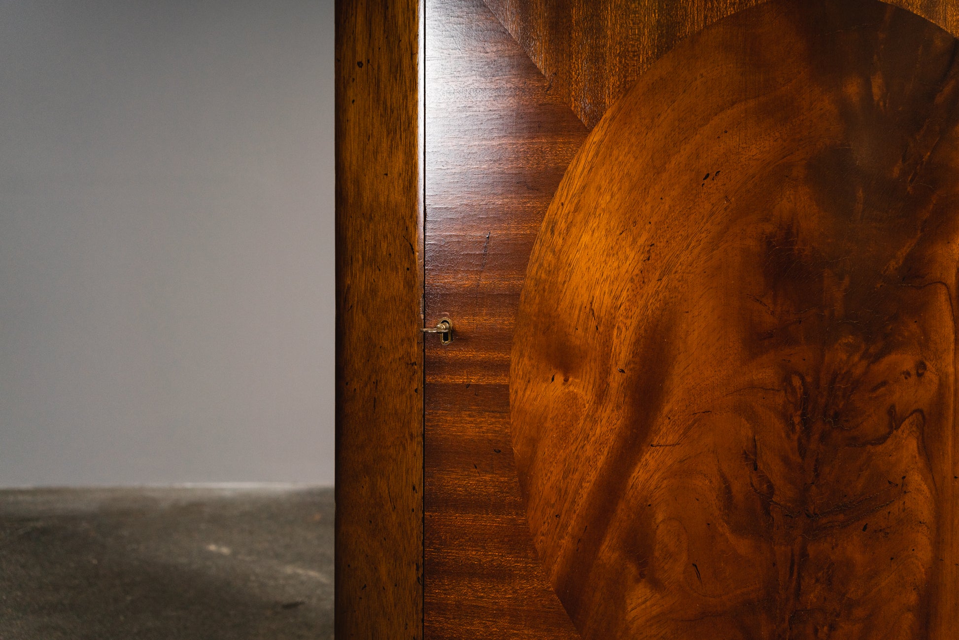 - in Mahagoni furniert, teilweise patiniert