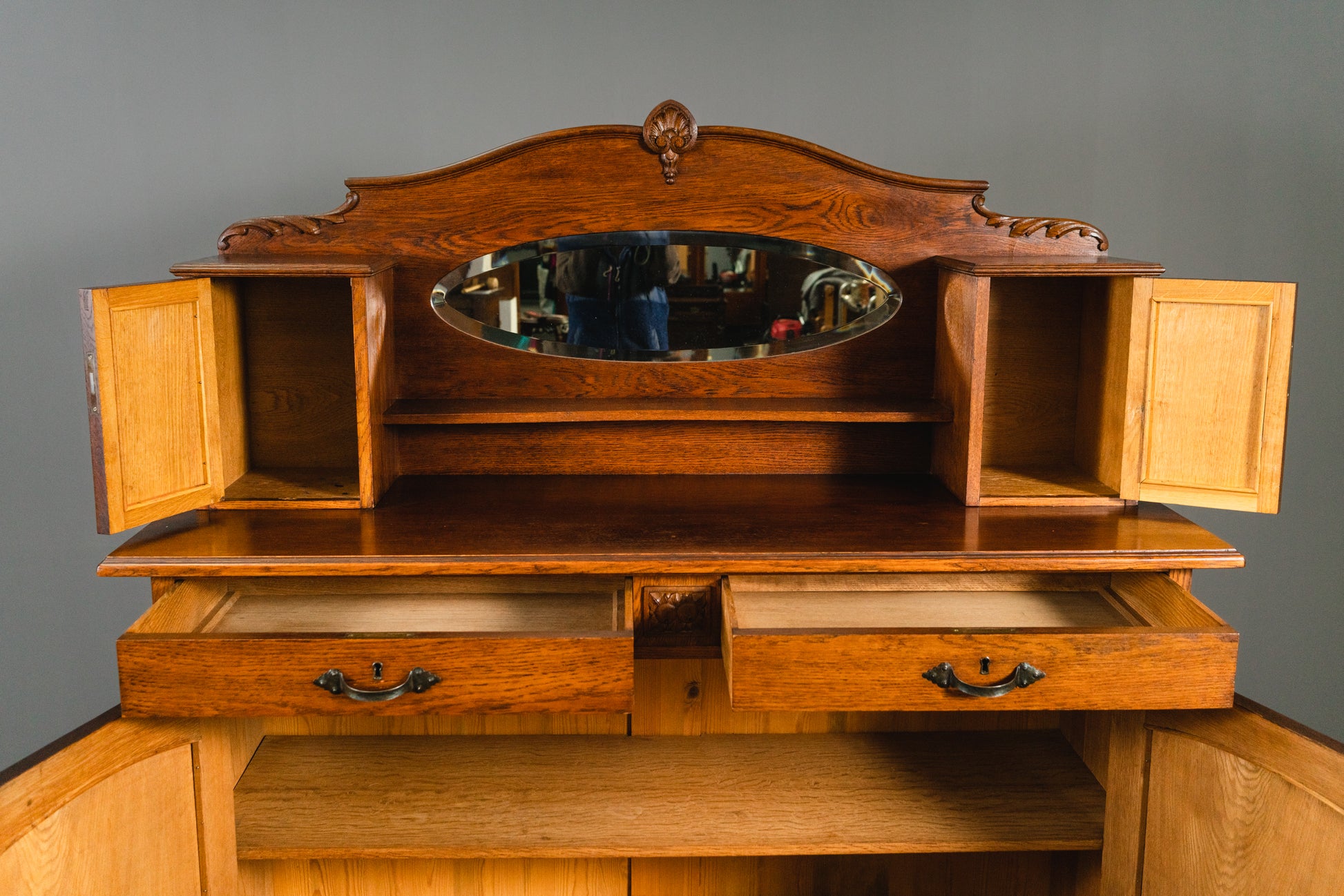- Vollholzkonstruktion in Eiche furniert, teilweise massiv