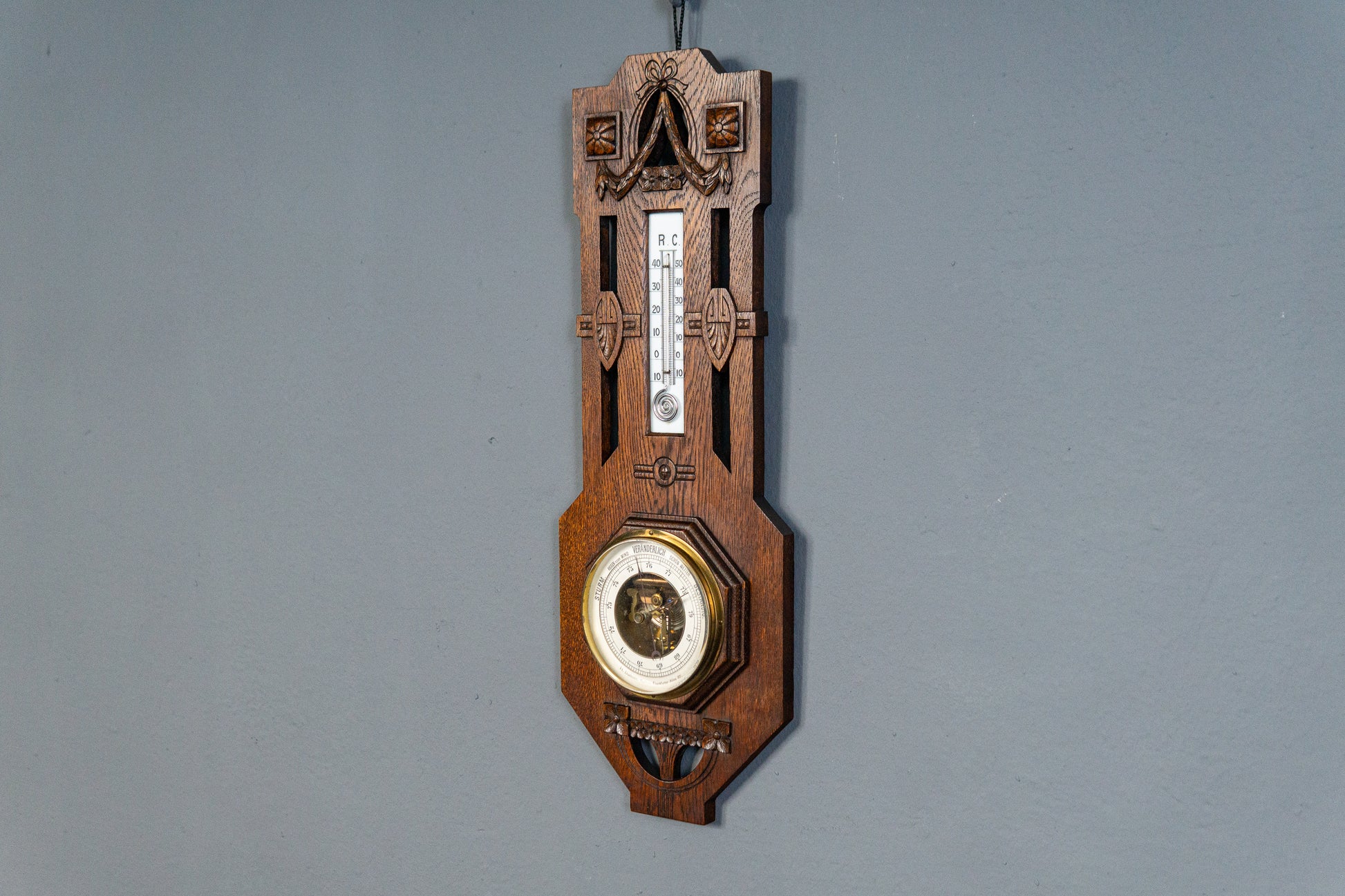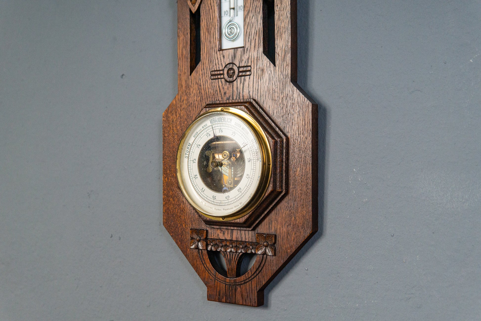 Elegante Jugendstil Wetterstation, Anfang des 20.Jahrhunderts - Thermometer Barometer Raumklima Uhr Alt Antik MÖBLINGER