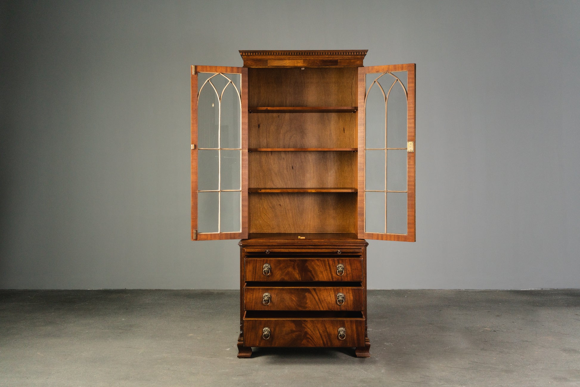 Eleganter Bücherschrank im Englischen Stil, 2.Hälfte des 20.Jahrhunderts - Vitrine Schrank Kommode Regal Alt Vintage MÖBLINGER