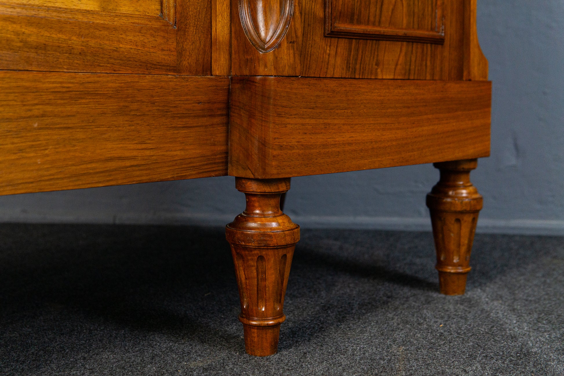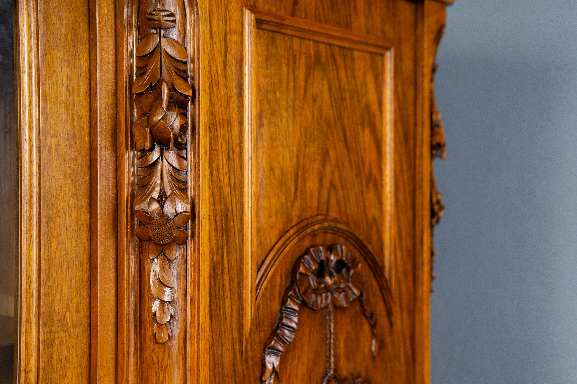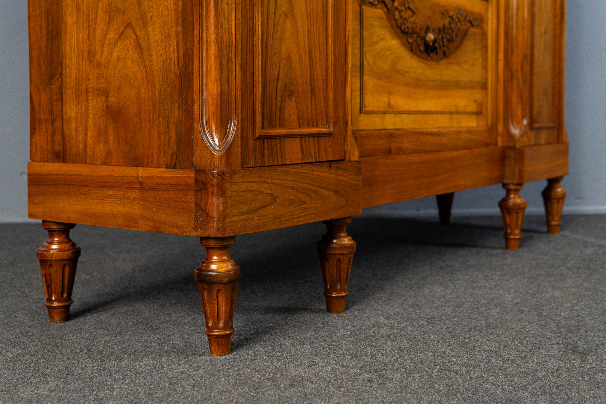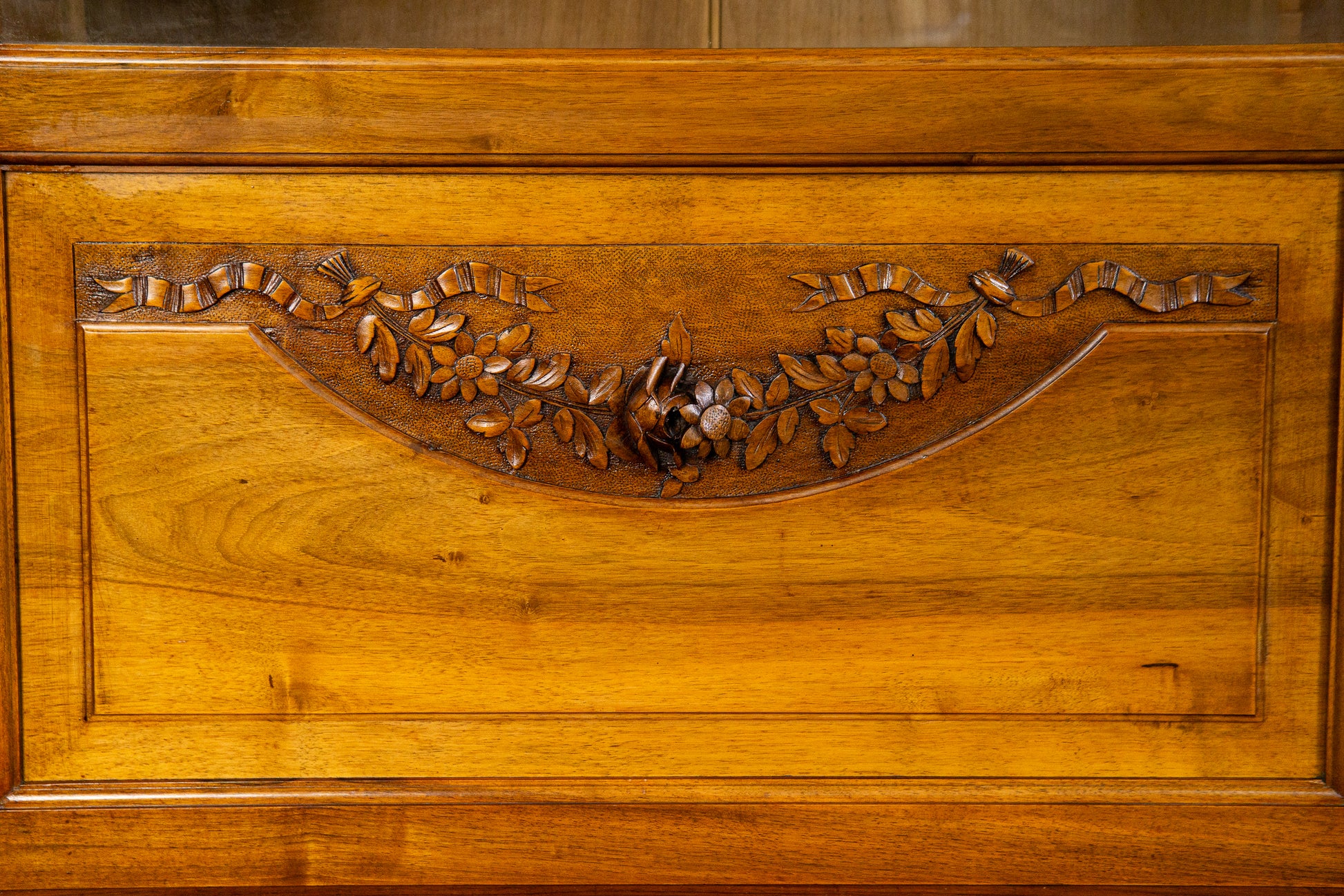 französischer Jugendstil Bücherschrank, Anfang des 20.Jahrhunderts - Nussbaum Eiche dreitürig Schnitzereien Schrank Vitrine Alt Antik MÖBLINGER