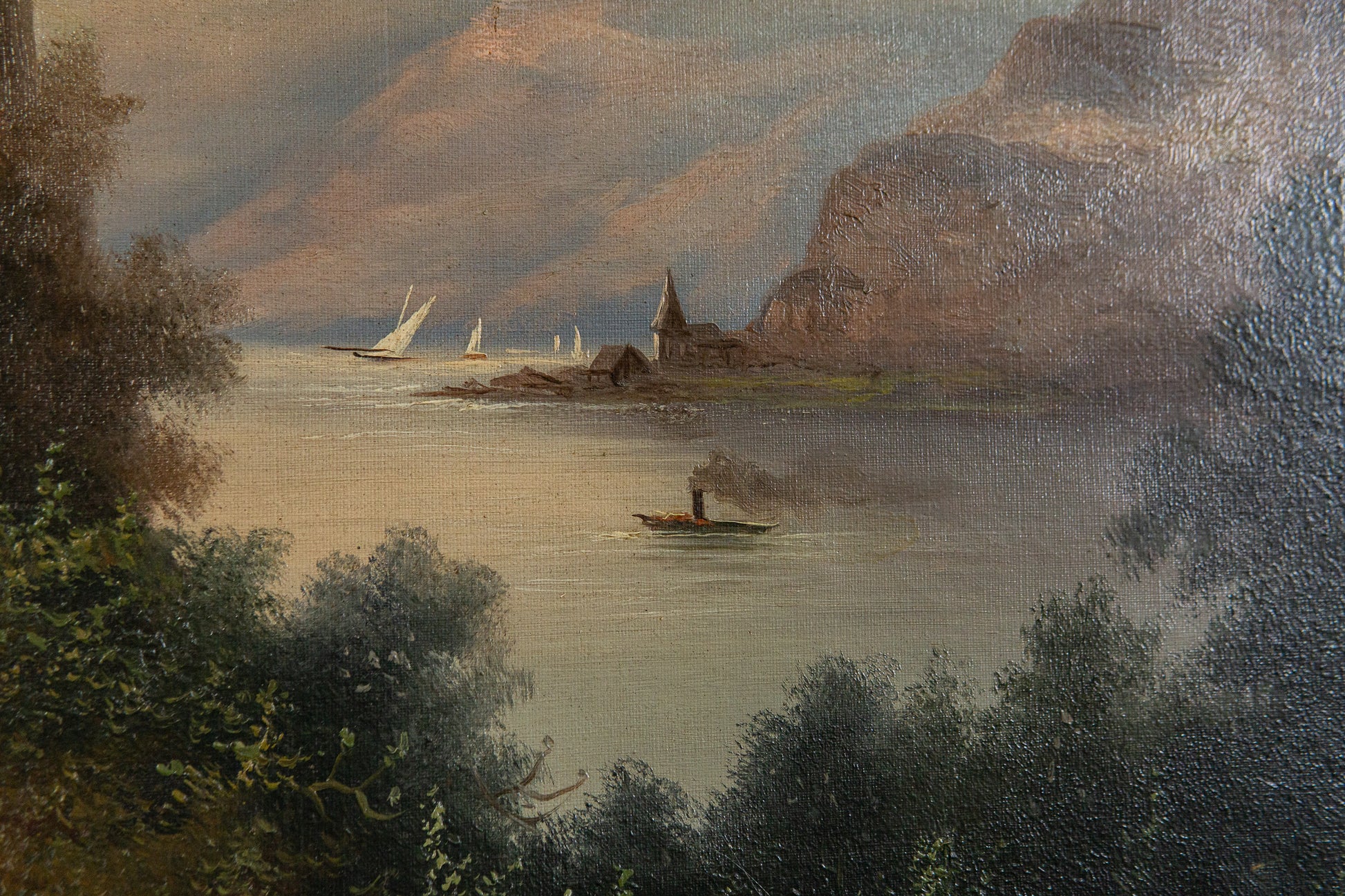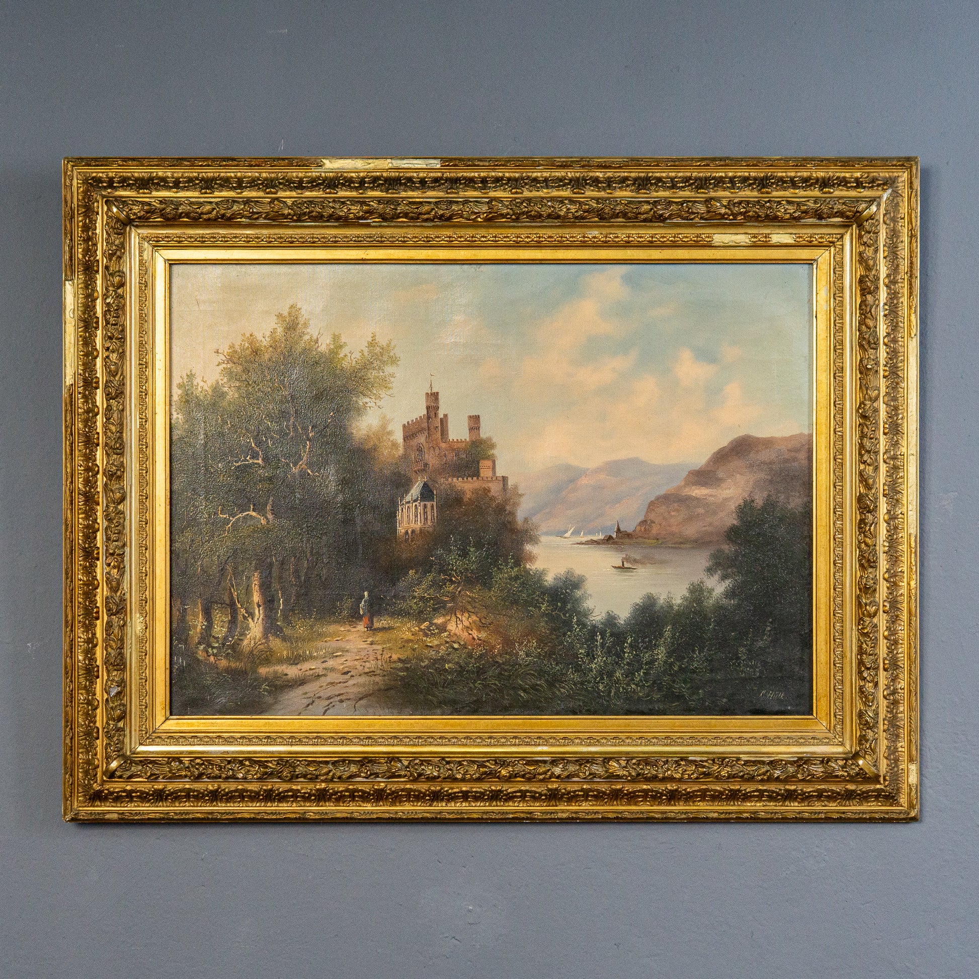 Schönes Gemälde mit Landschaftsmalerei, erste Hälfte des 20.Jahrhunderts - C. Hütt Malerei Ölbild Rahmen Kunst Alt Antik MÖBLINGER