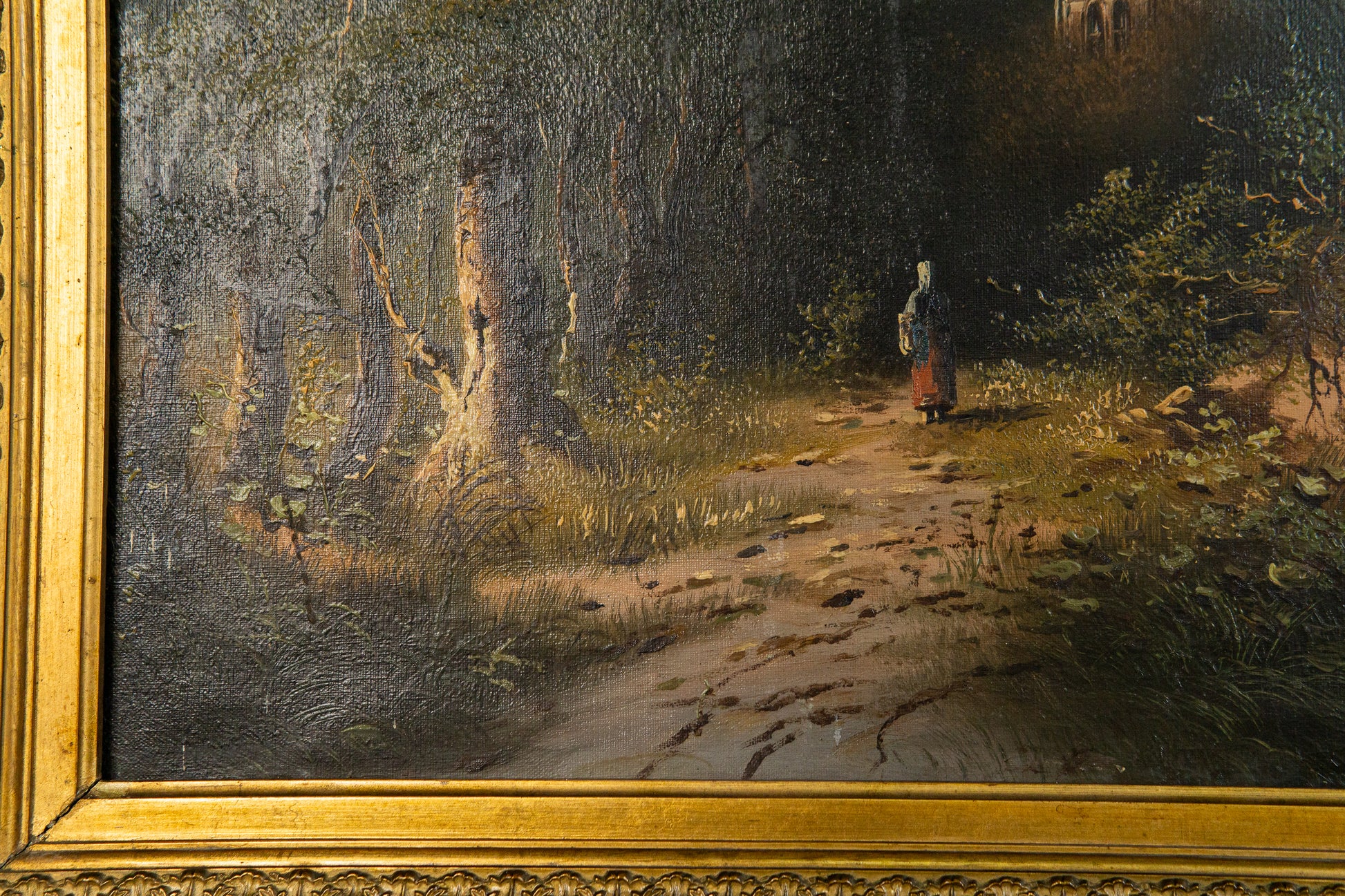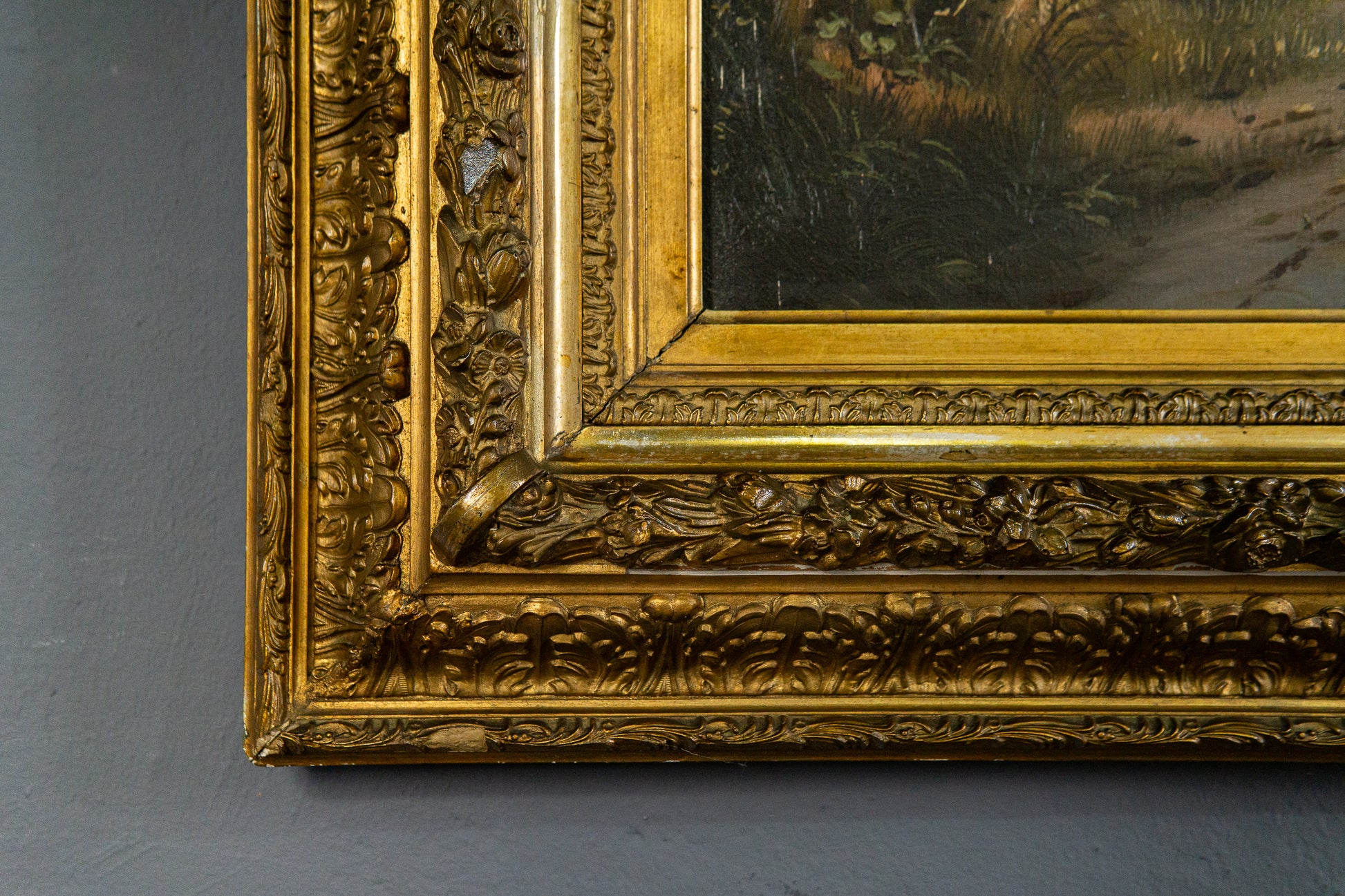 Das Gemälde befindet sich in einem guten Zustand mit authentischem Erscheinungsbild und altersbedingten Gebrauchsspuren - Rahmen mit sichtbaren kleinen Ausbrüchen.