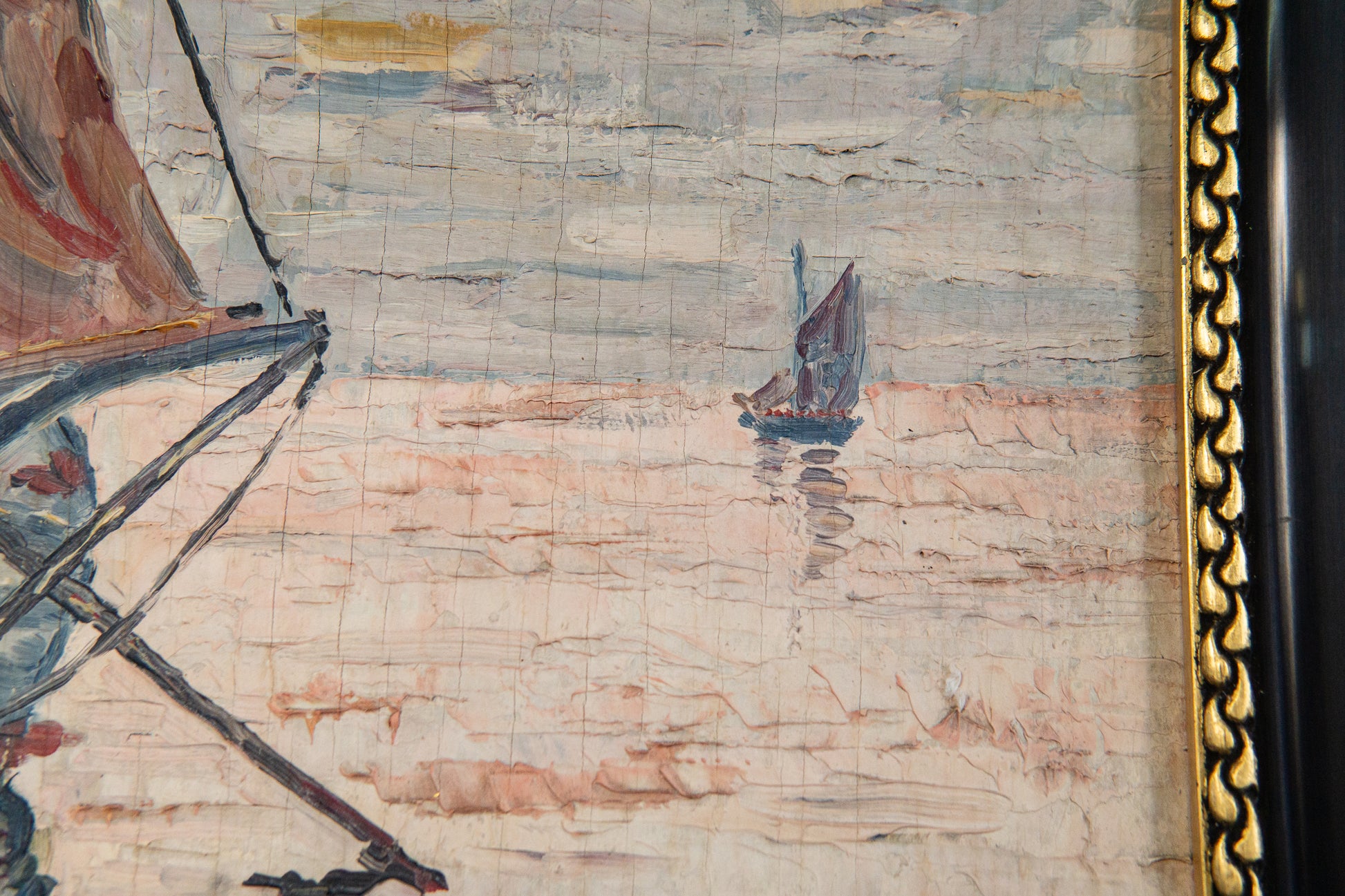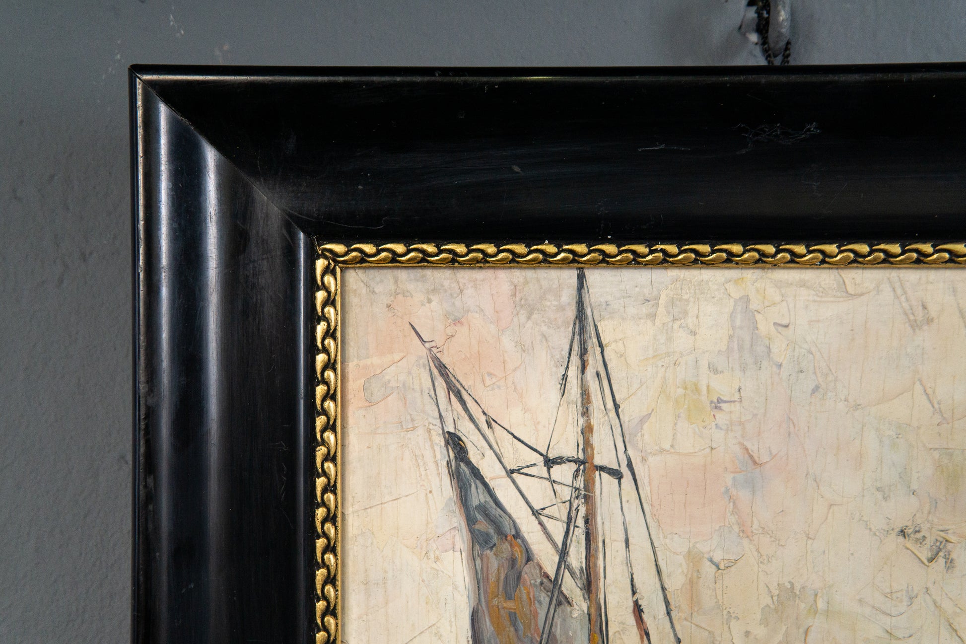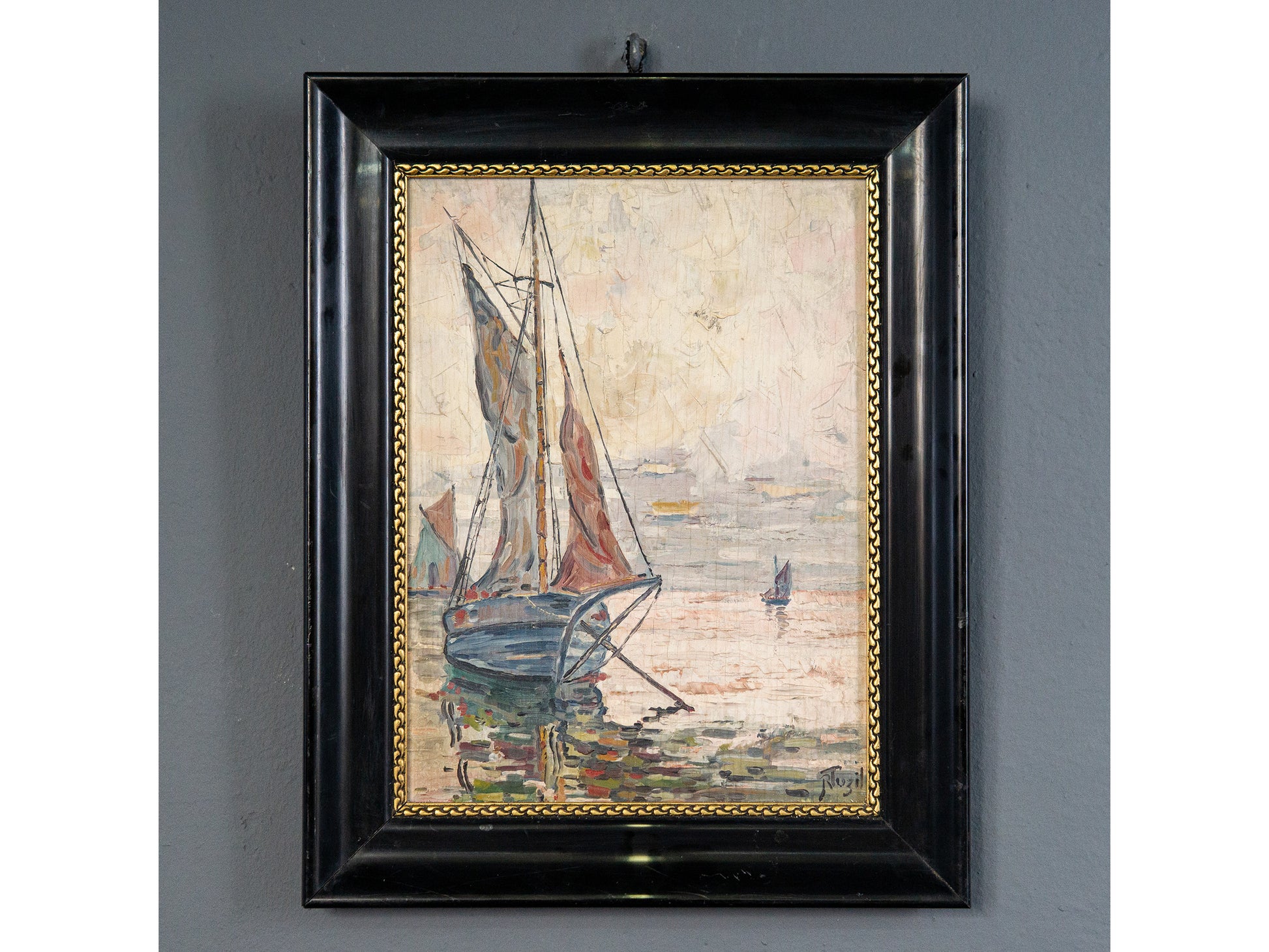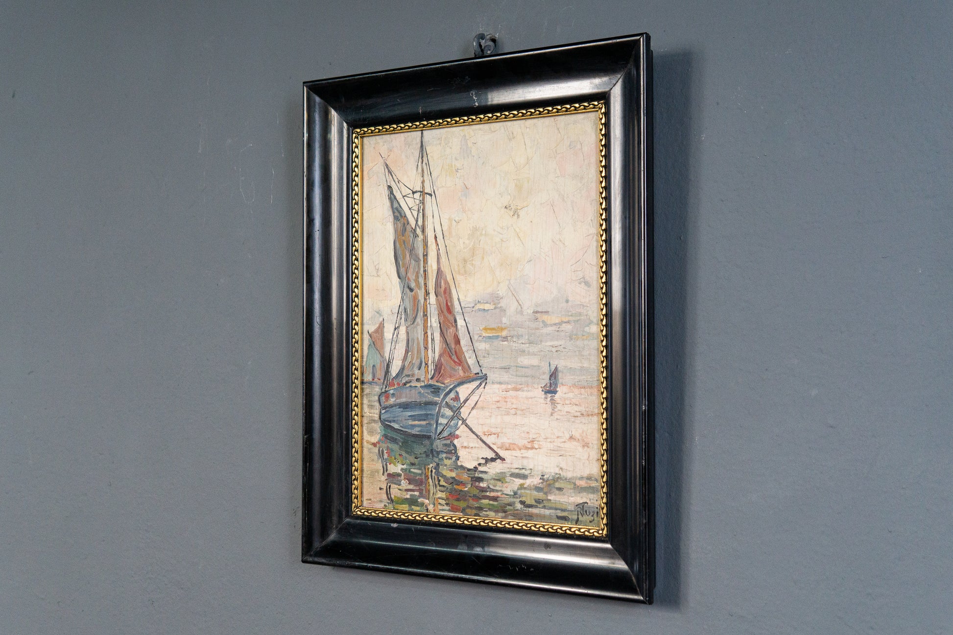 Maritimes gerahmtes Ölgemälde, erste Hälfte des 20.Jahrhunderts - Ölbild Gemälde Malerei Kunst Maritim Alt Antik MÖBLINGER