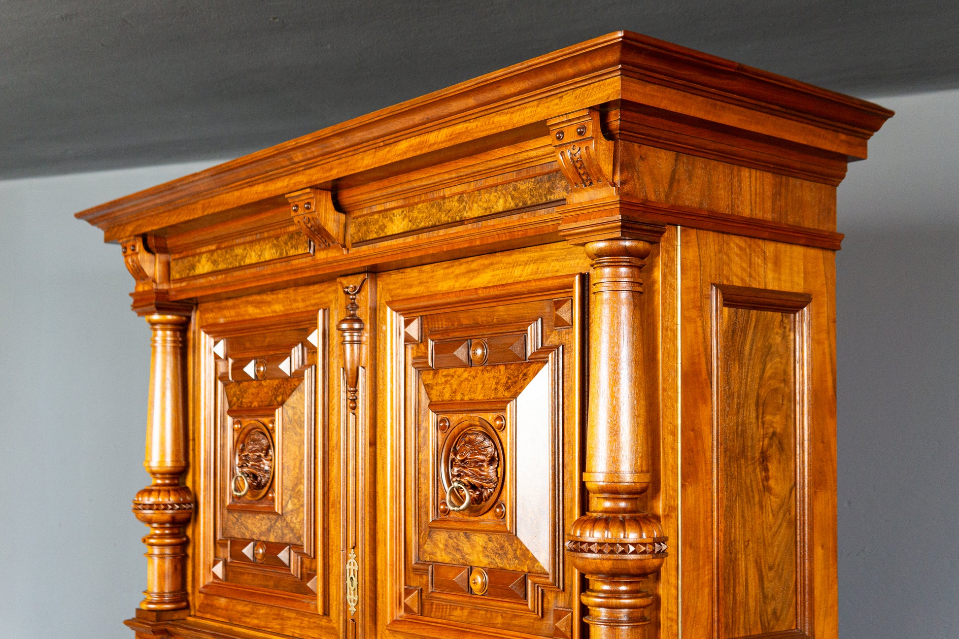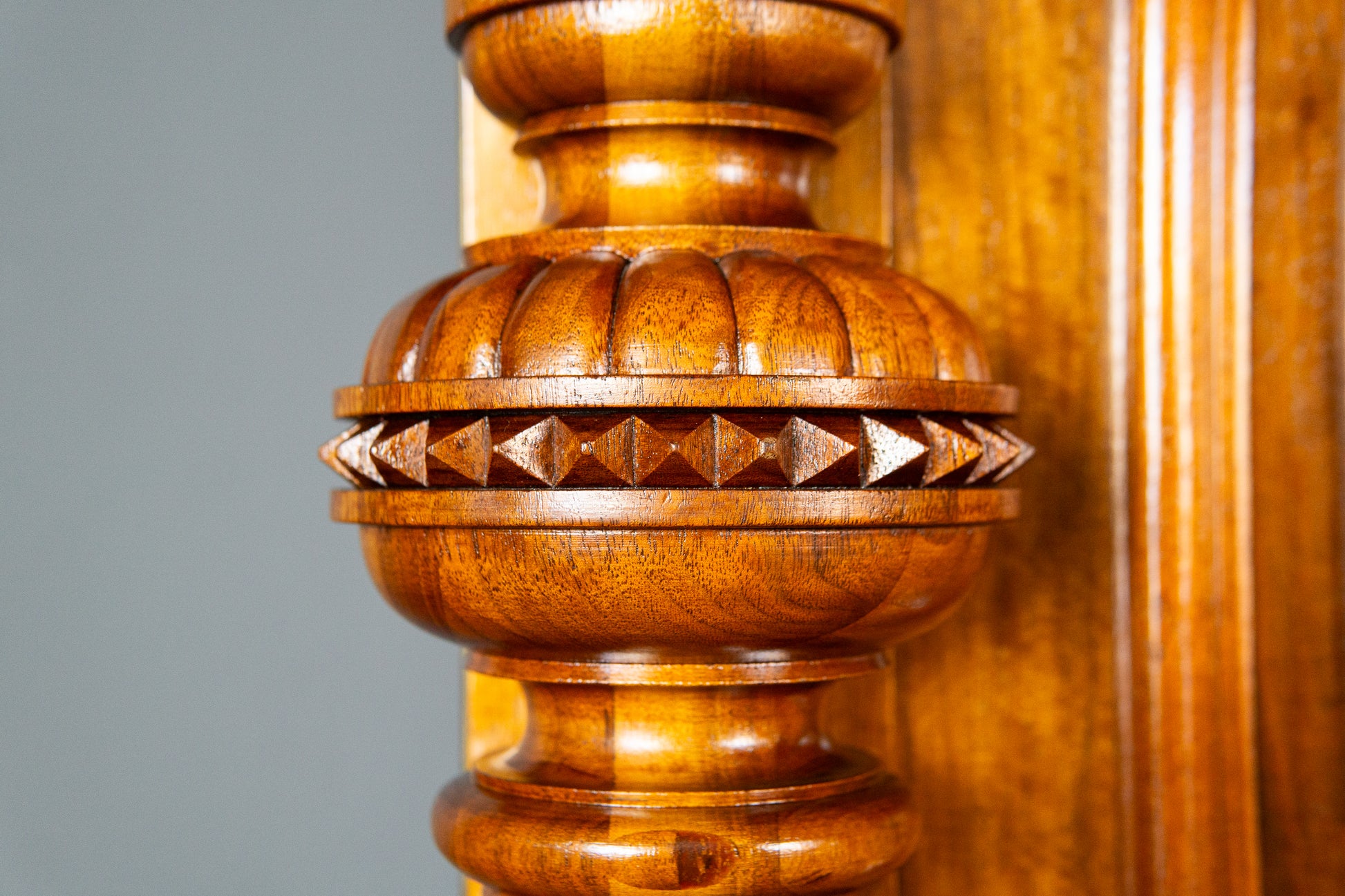 - prunkvoll dekoriert und verziert mit Drechselelementen, Zierleisten, Vollsäulen und fein geschnitzten Löwenköpfen