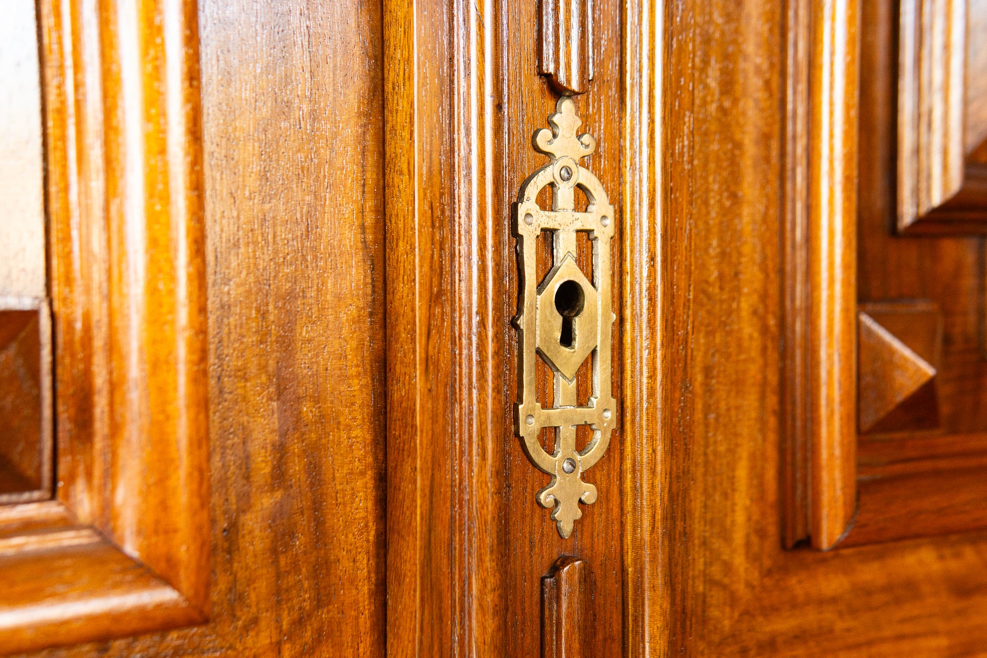 - passende Beschläge und Griffe aus Messing und Nussbaum