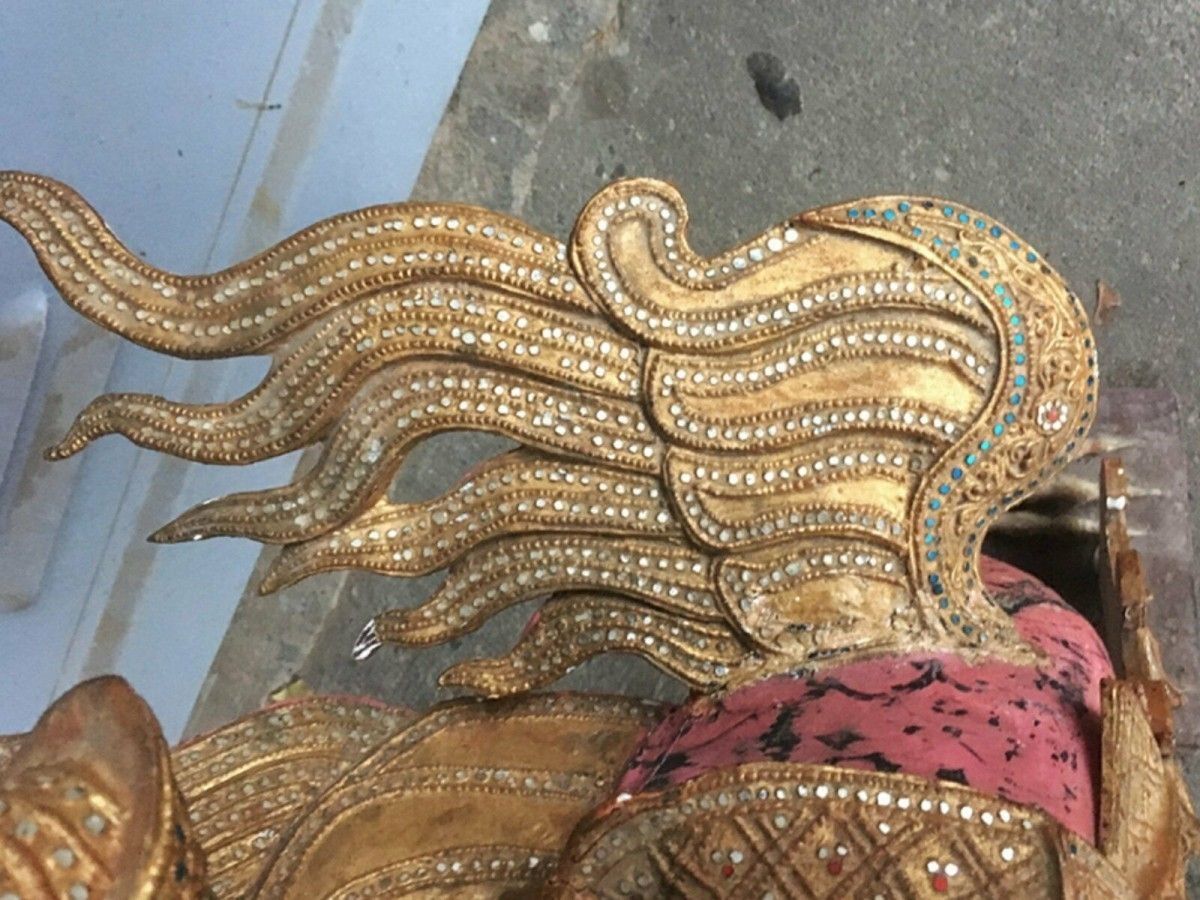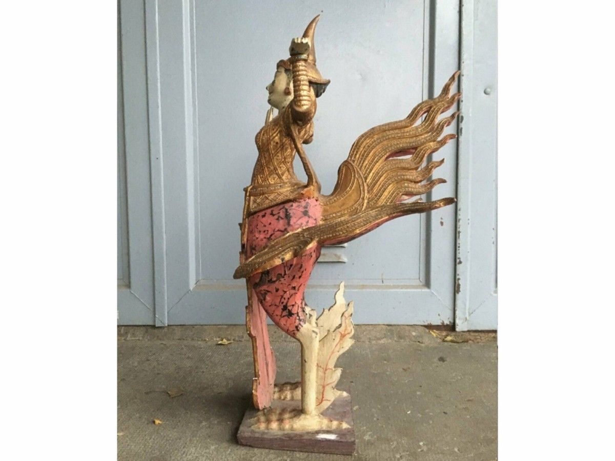 Große Holzskulptur Phra Khrut Pha vergoldet alt antik 48