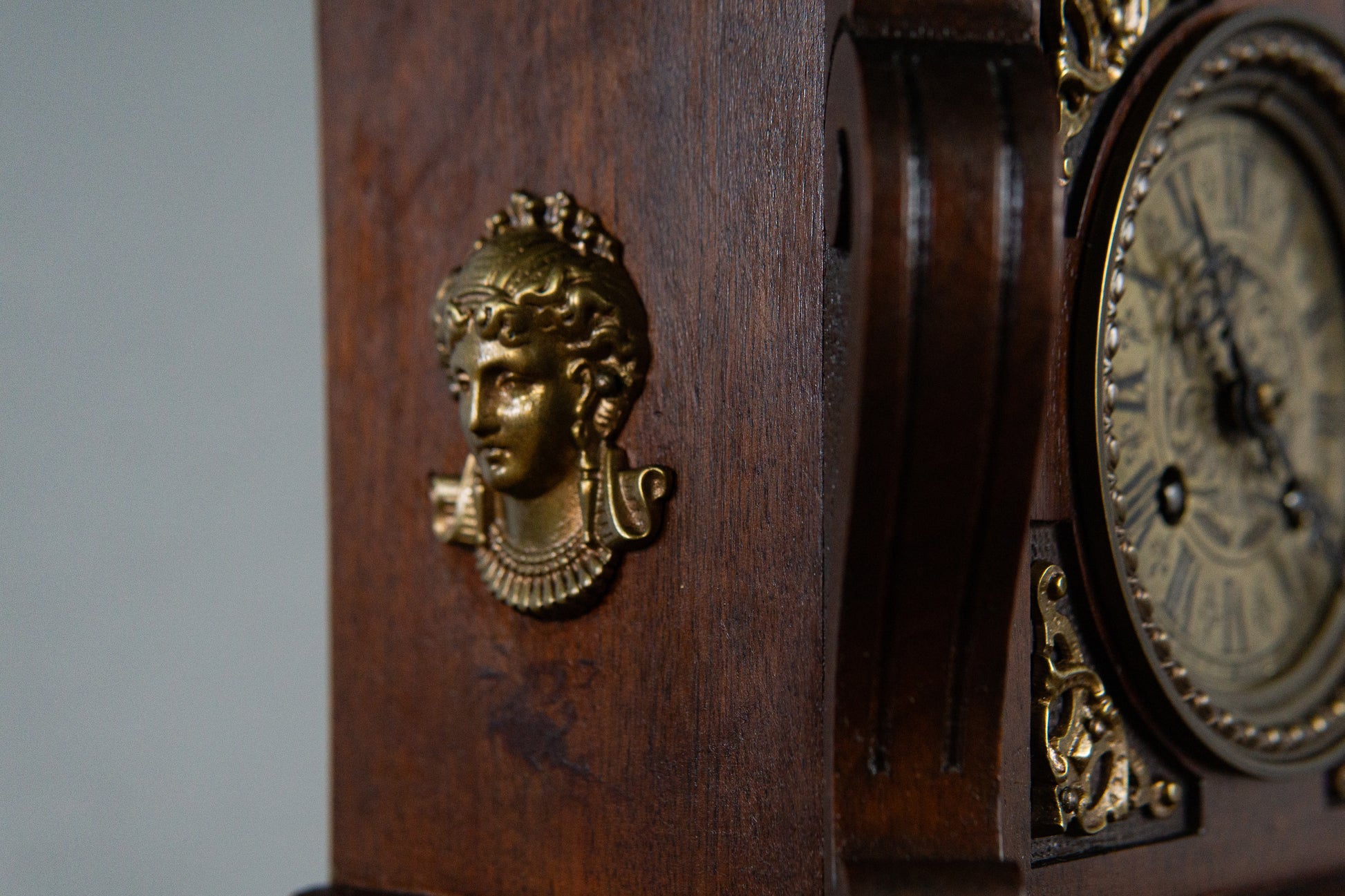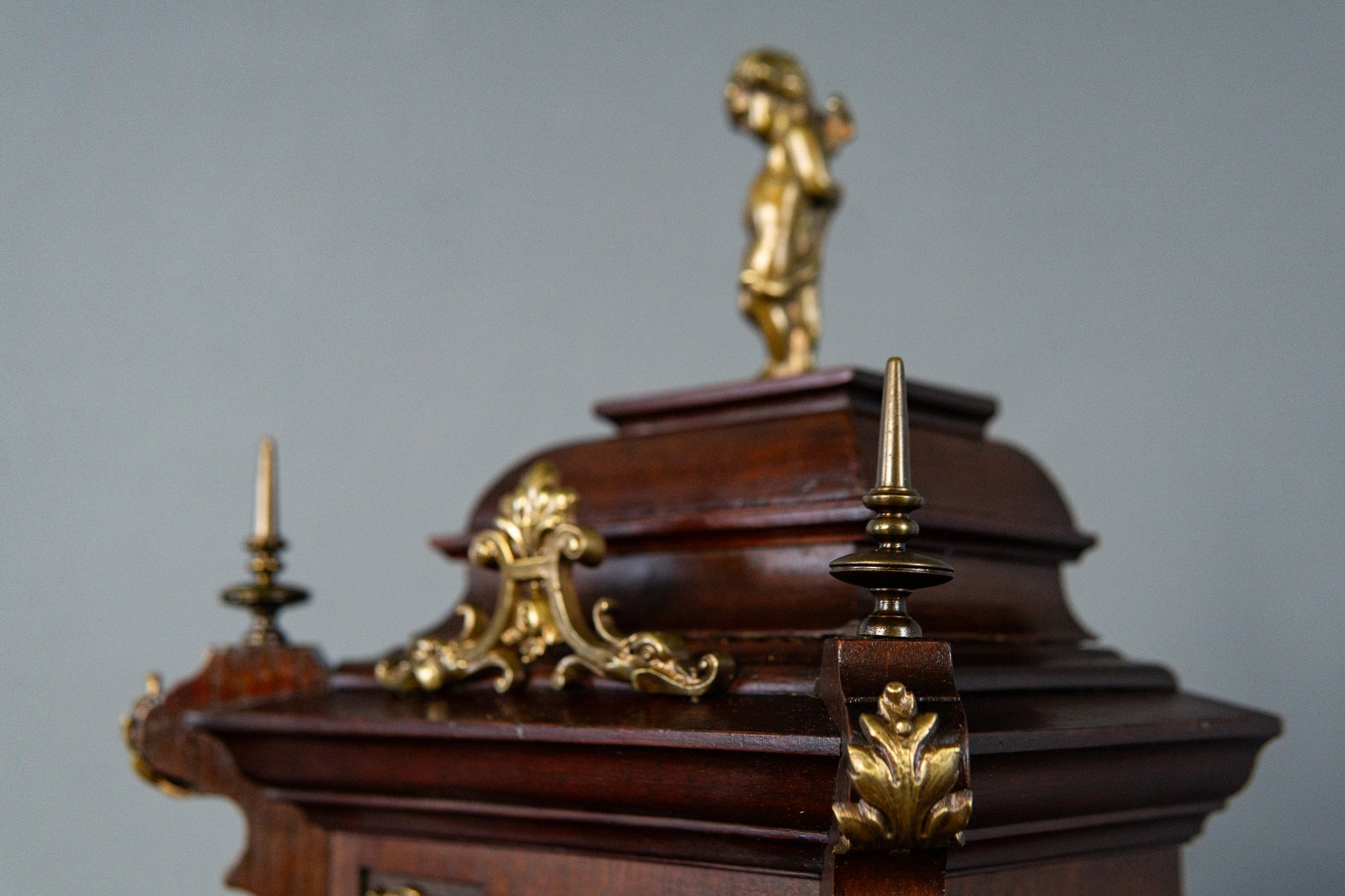 - dekoriert und verziert mit verschiedenen Bronze- und Messingverzierungen, Profilierungen und feinen Schnitzereien