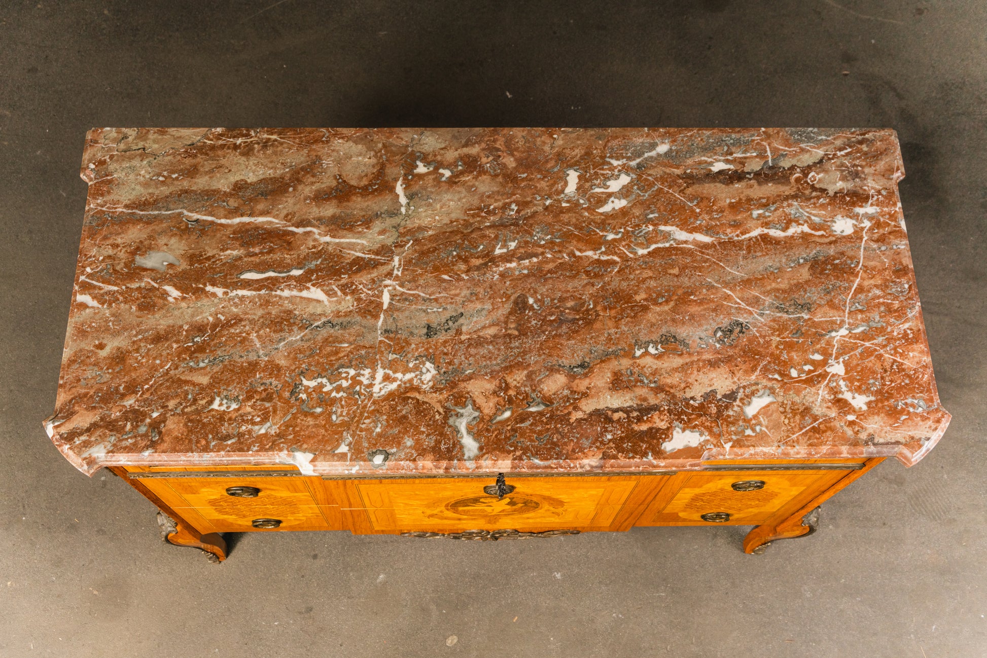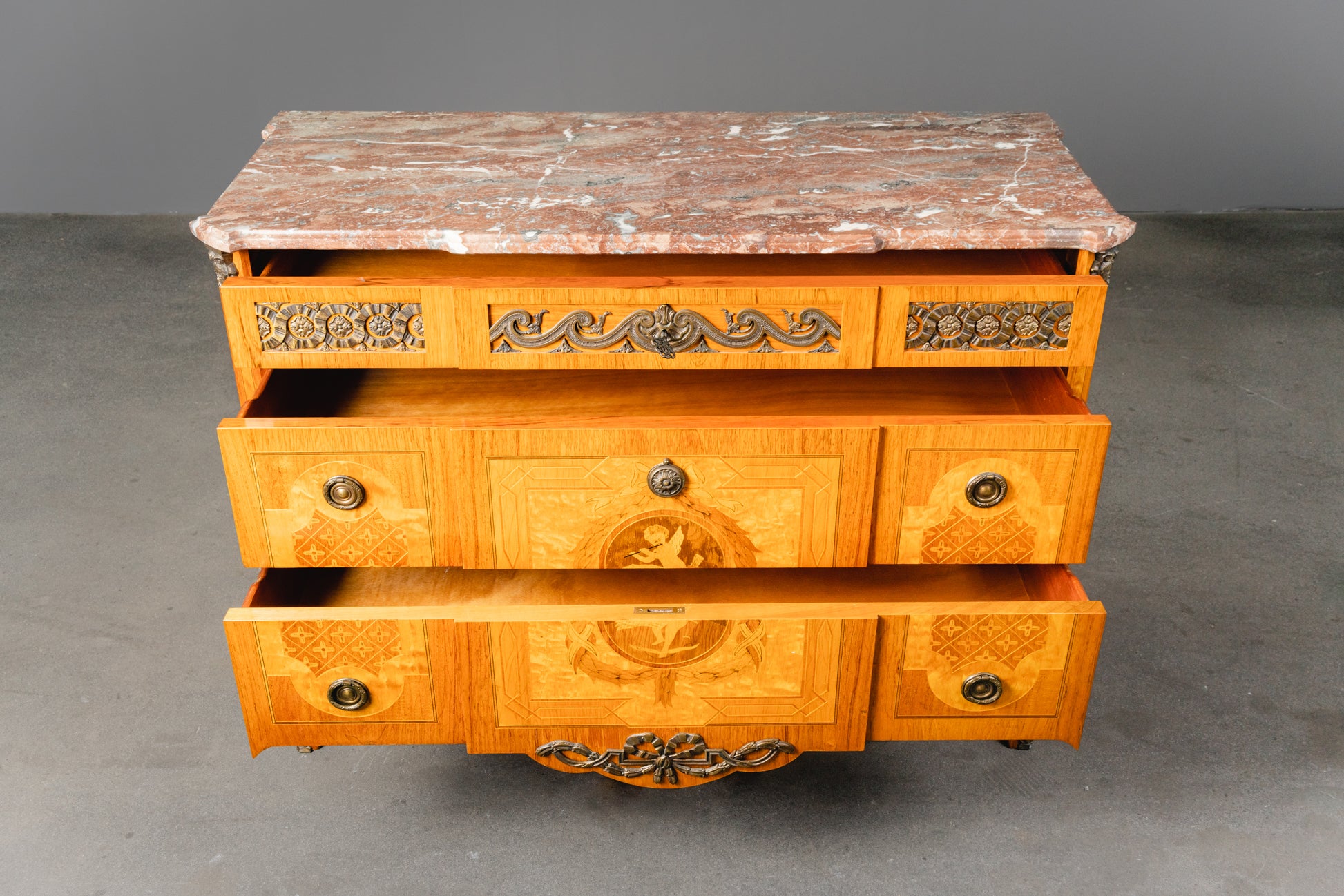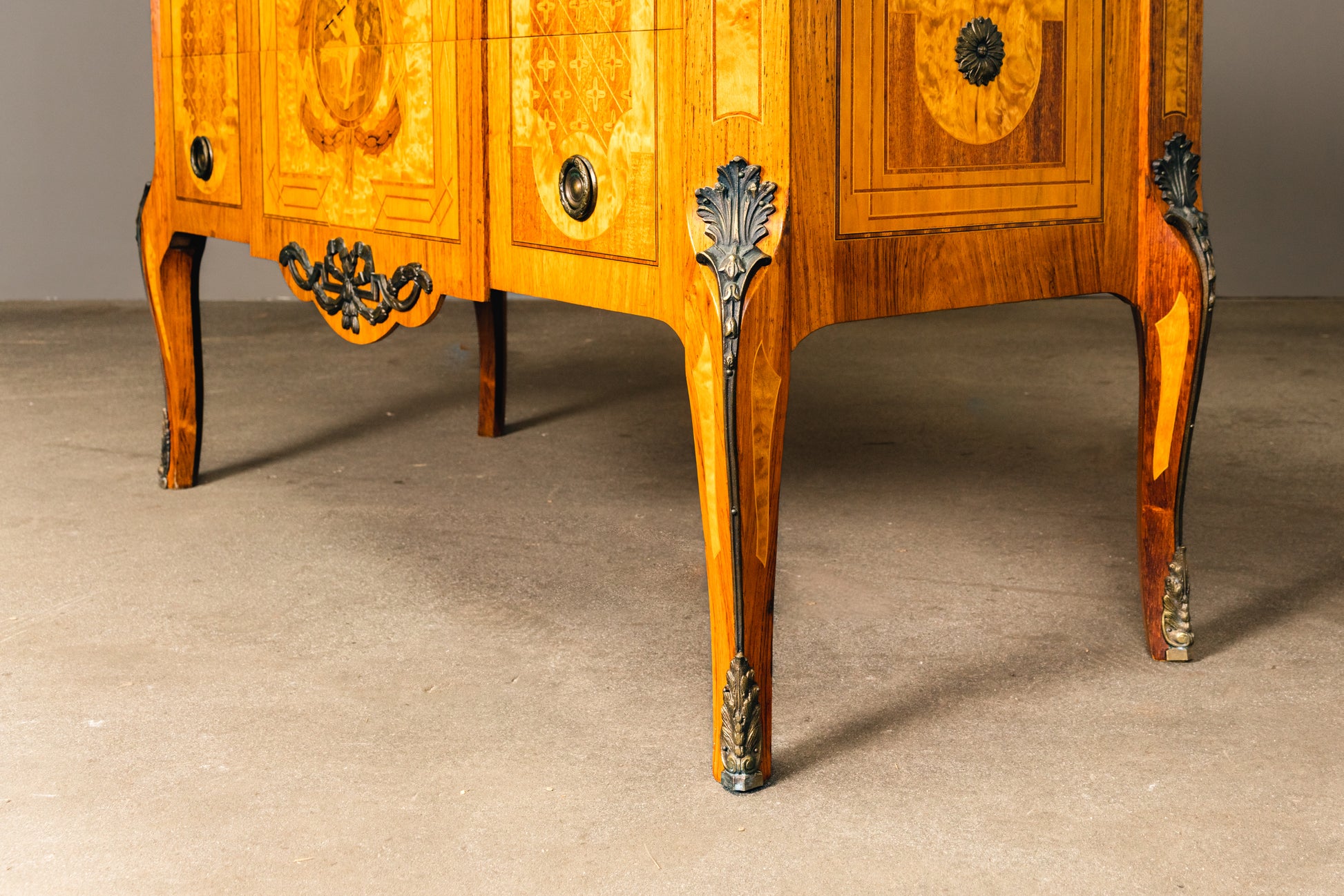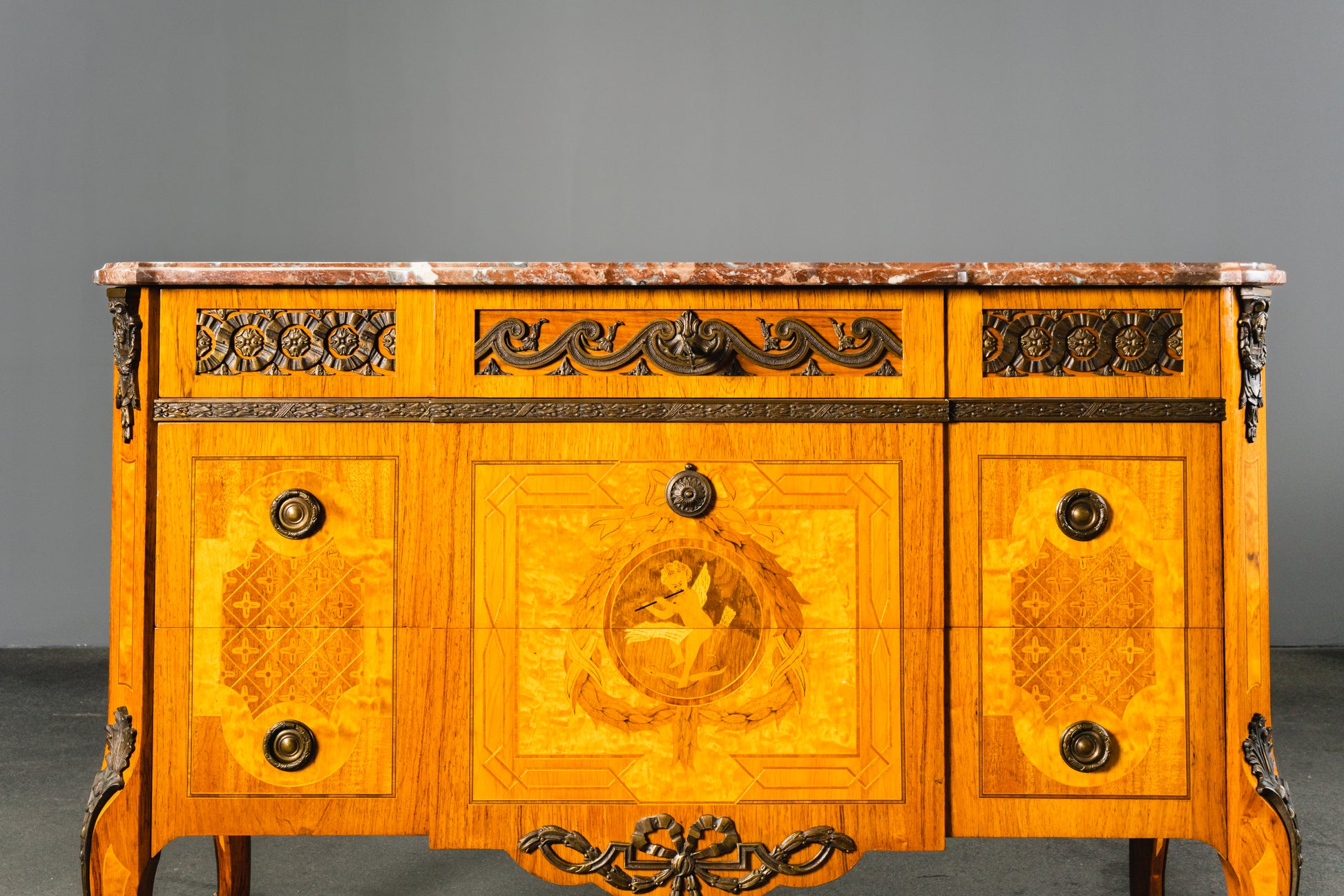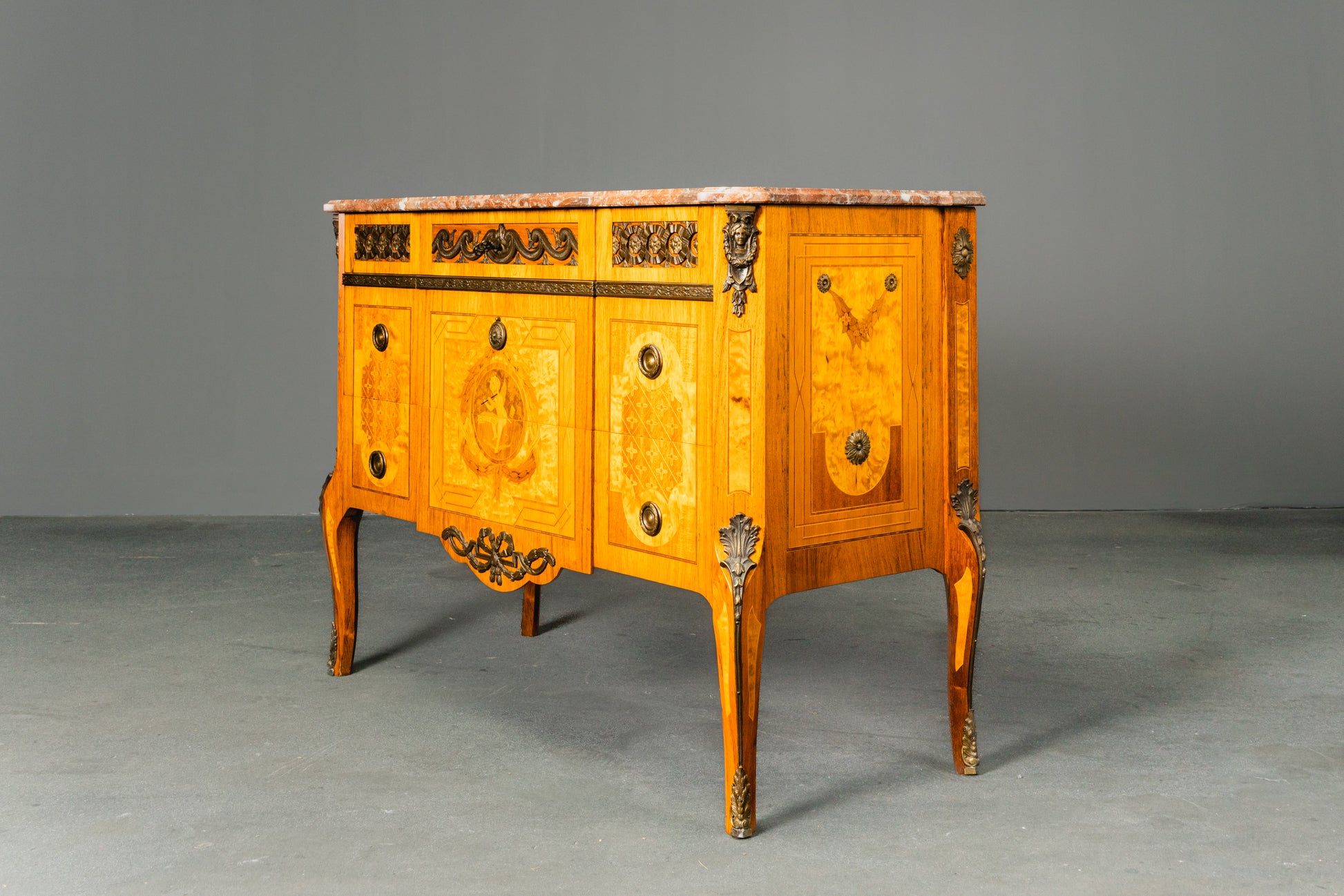 reichlich verzierte Kommode im Louis XVI Stil , 2.Hälfte des 20.Jahrhunderts - Schrank Anrichte Regal Alt Vintage MÖBLINGER
