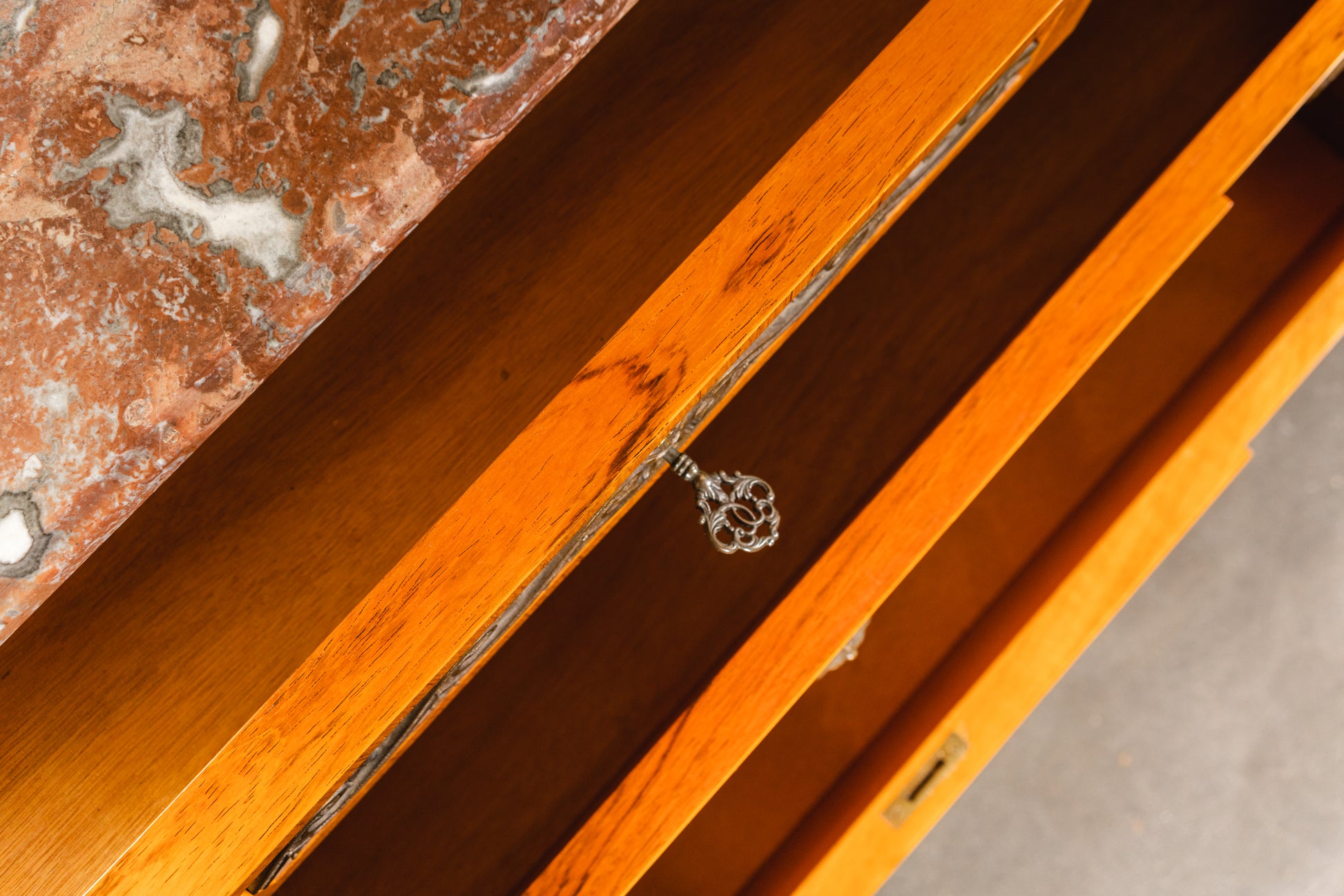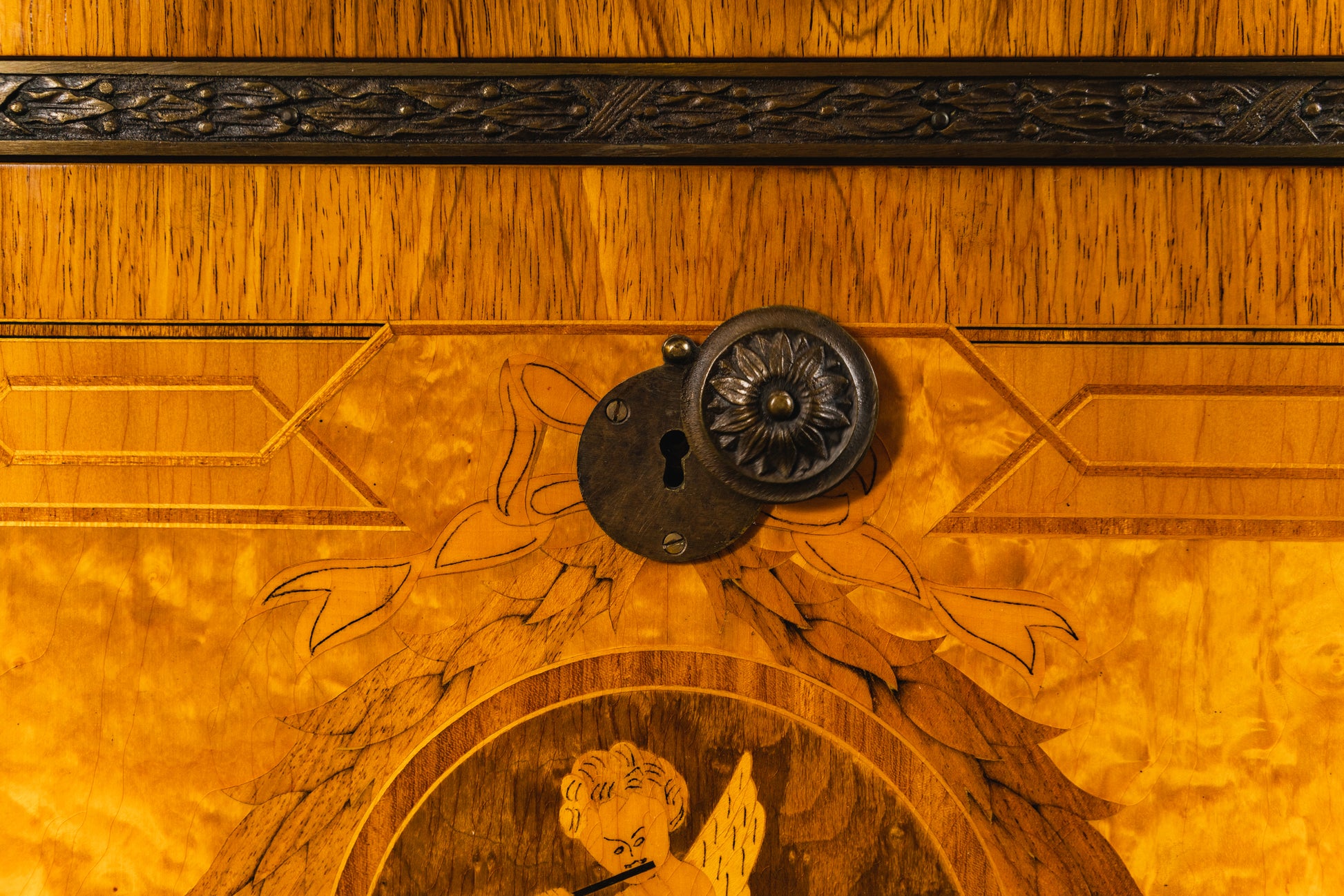 - aufwendig mit verschiedenen Harthölzern furniert