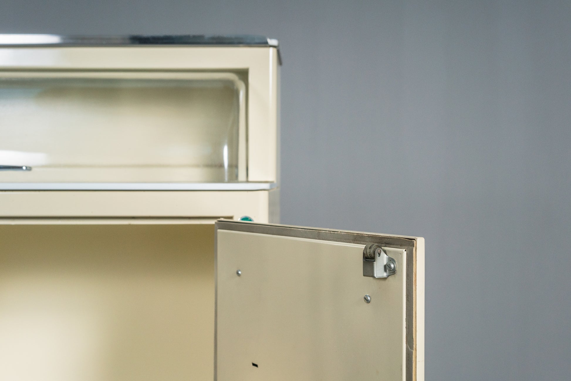 - zweitürig, mit innenliegendem Fachboden aus Strukturglas