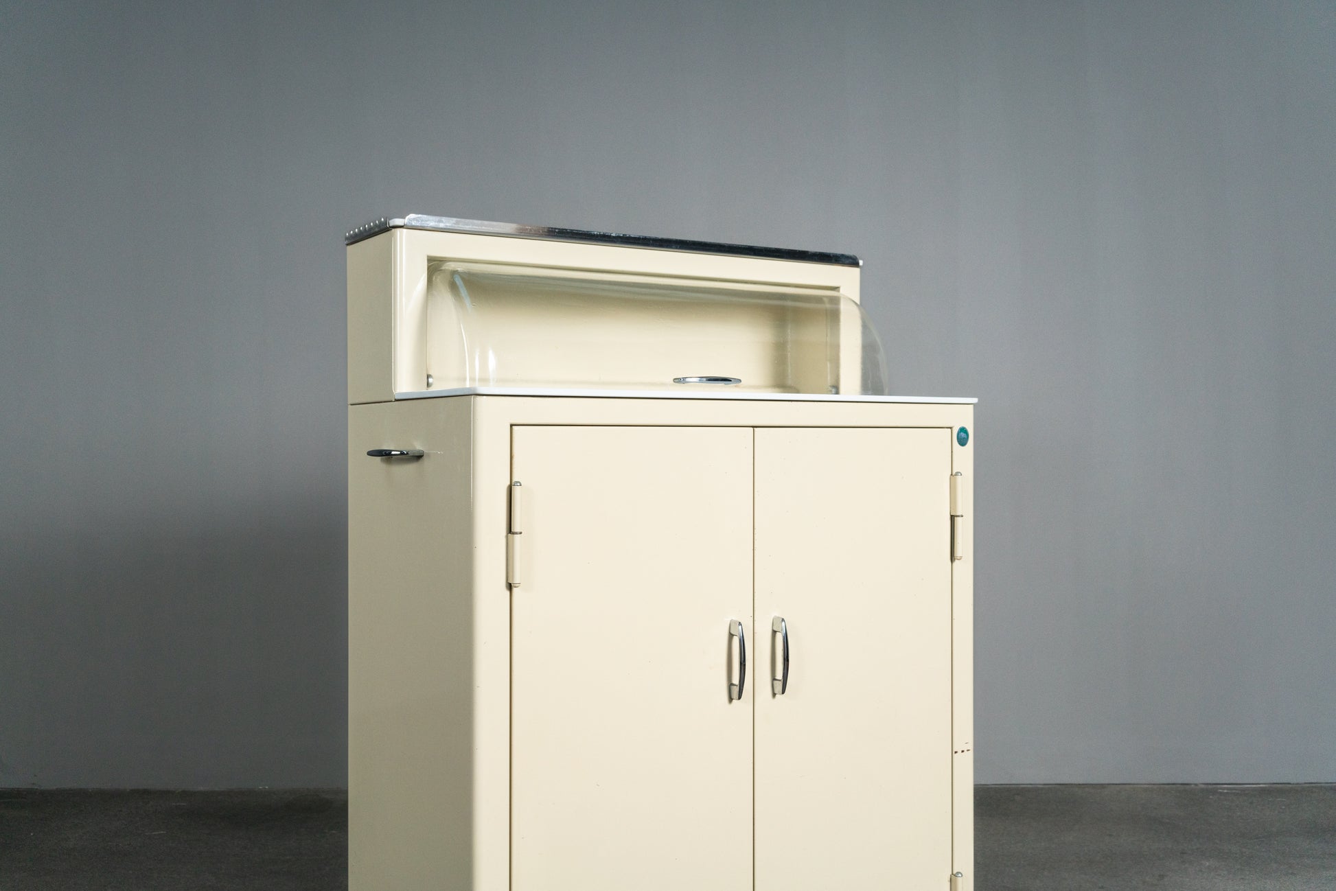 Cooler Medizinschrank im Industriedesign, Mitte des 20.Jahrhunderts - Arztschrank Arzt Schrank Industrial Kommode Regal Alt Vintage MÖBLINGER