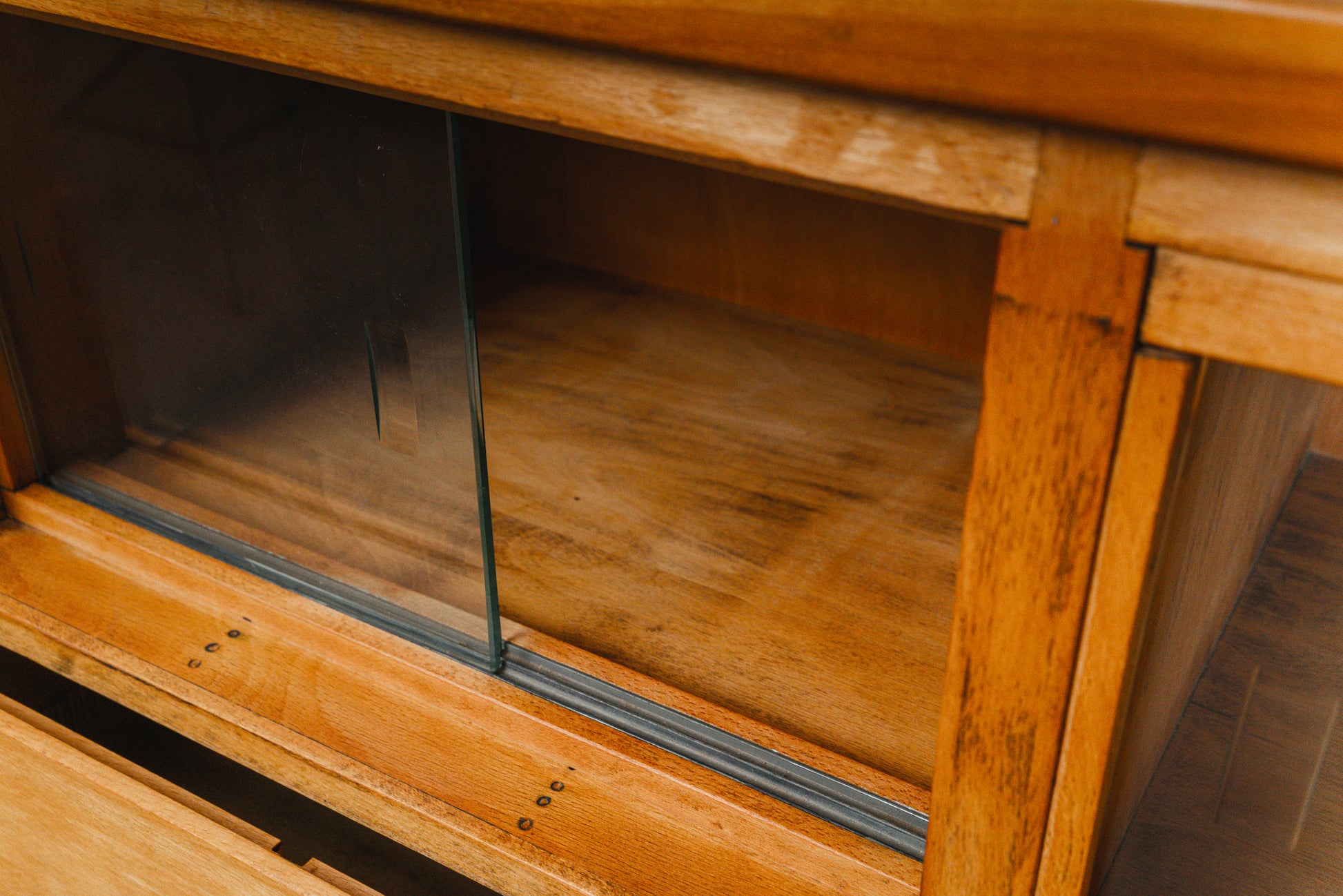 Das Möbel befindet sich in einem gepflegten und funktionsfähigem Zustand mit authentischem Erscheinungsbild und altersbedingten Gebrauchsspuren.