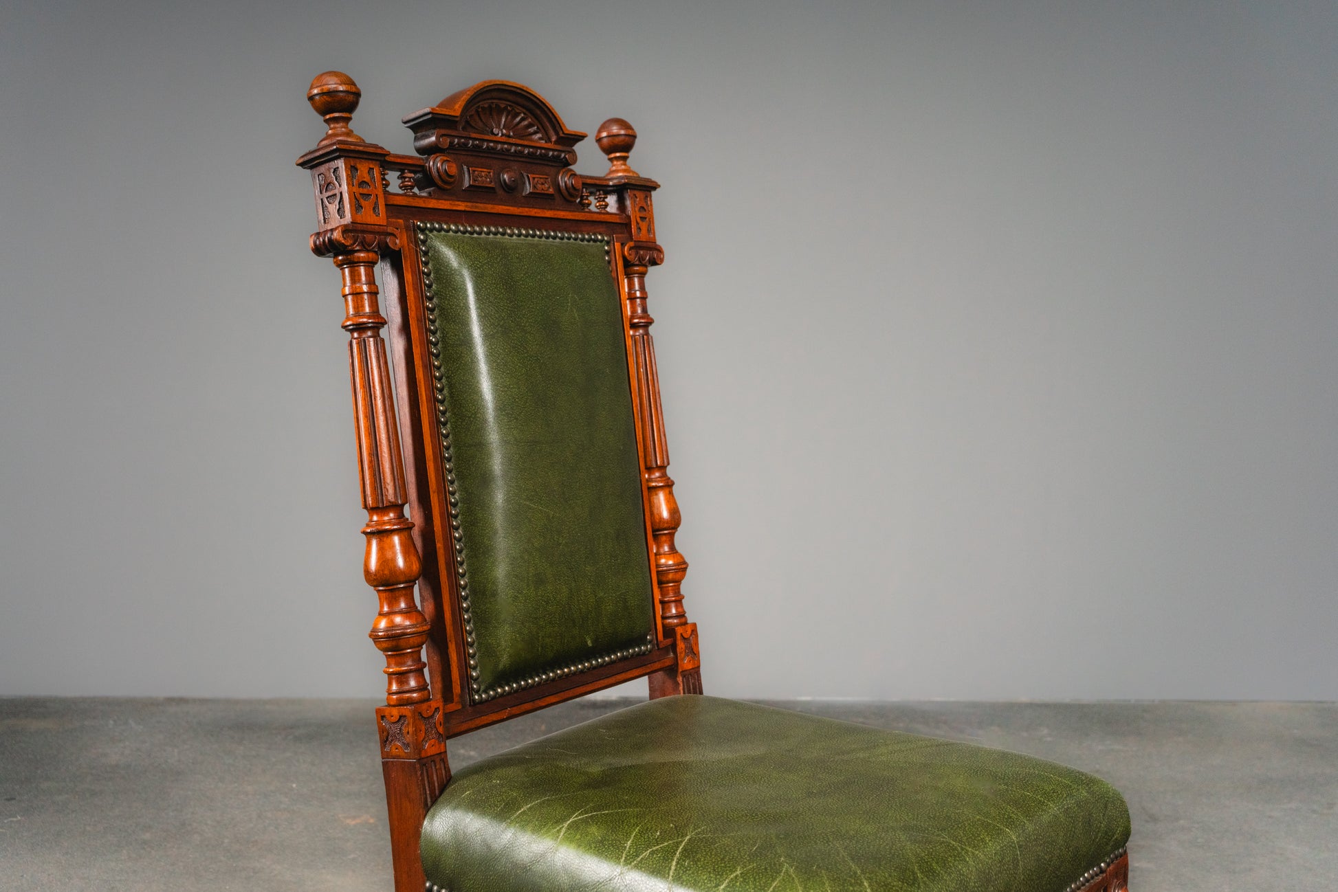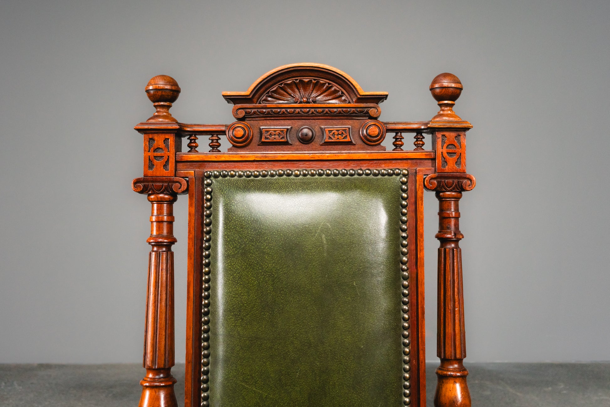 - dekorative Stuhllehnen mit Säulen und Muschelbekrönung