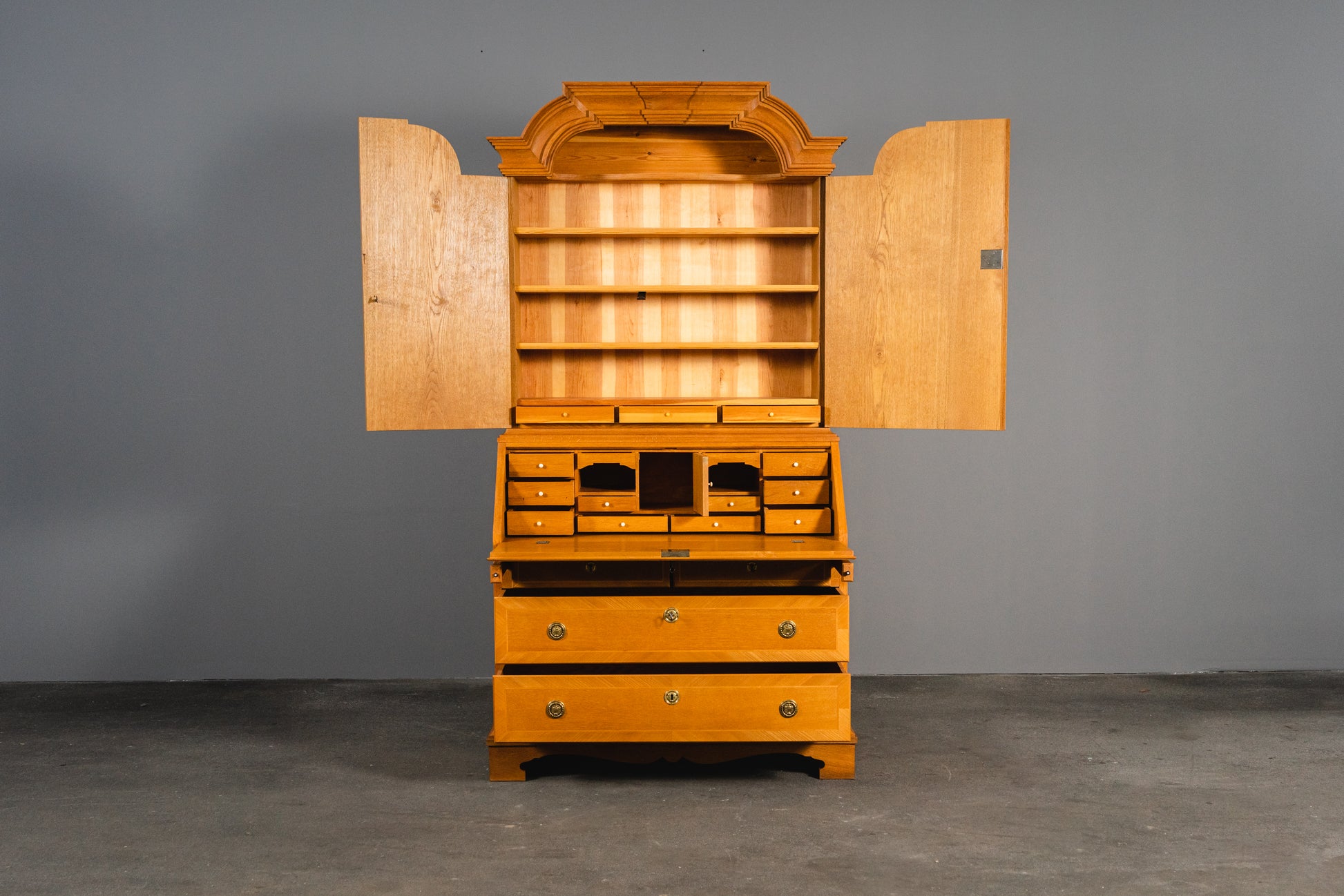 - massive Kieferkonstruktion in Eiche furniert, teilweise massiv gefertigt