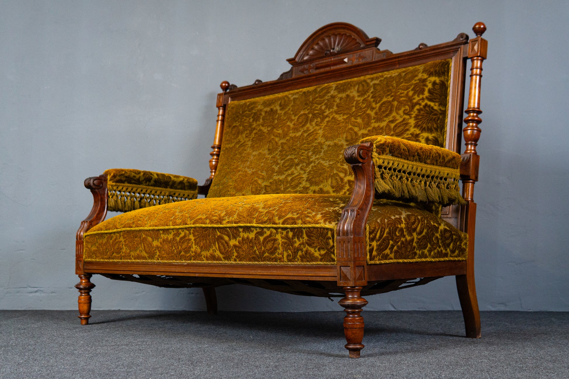 Elegante Gründerzeit Sofagarnitur im Originalzustand, zweite Hälfte des 19.Jahrhunderts - Sessel Sofa Alt Antik MÖBLINGER