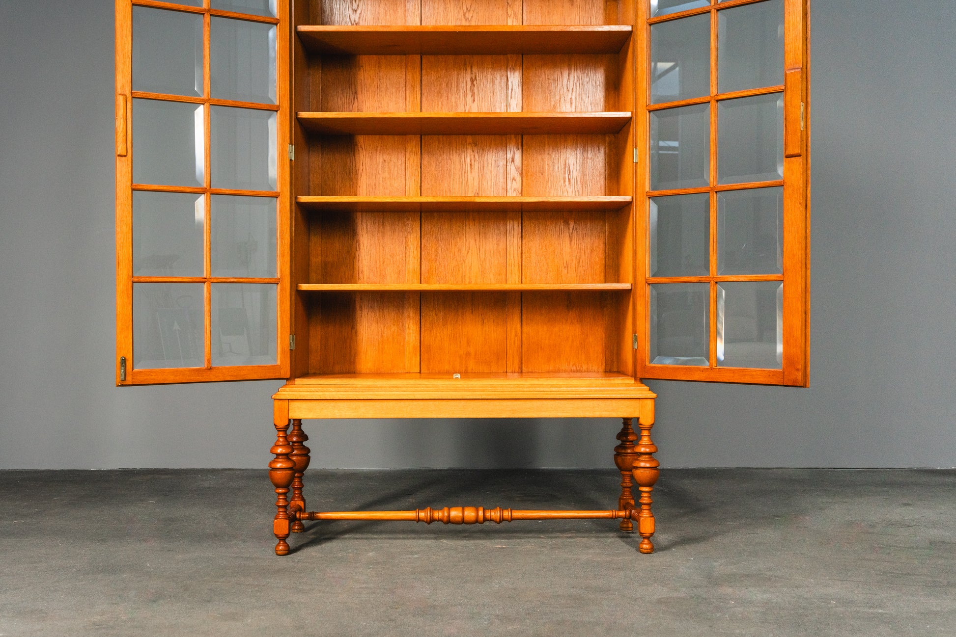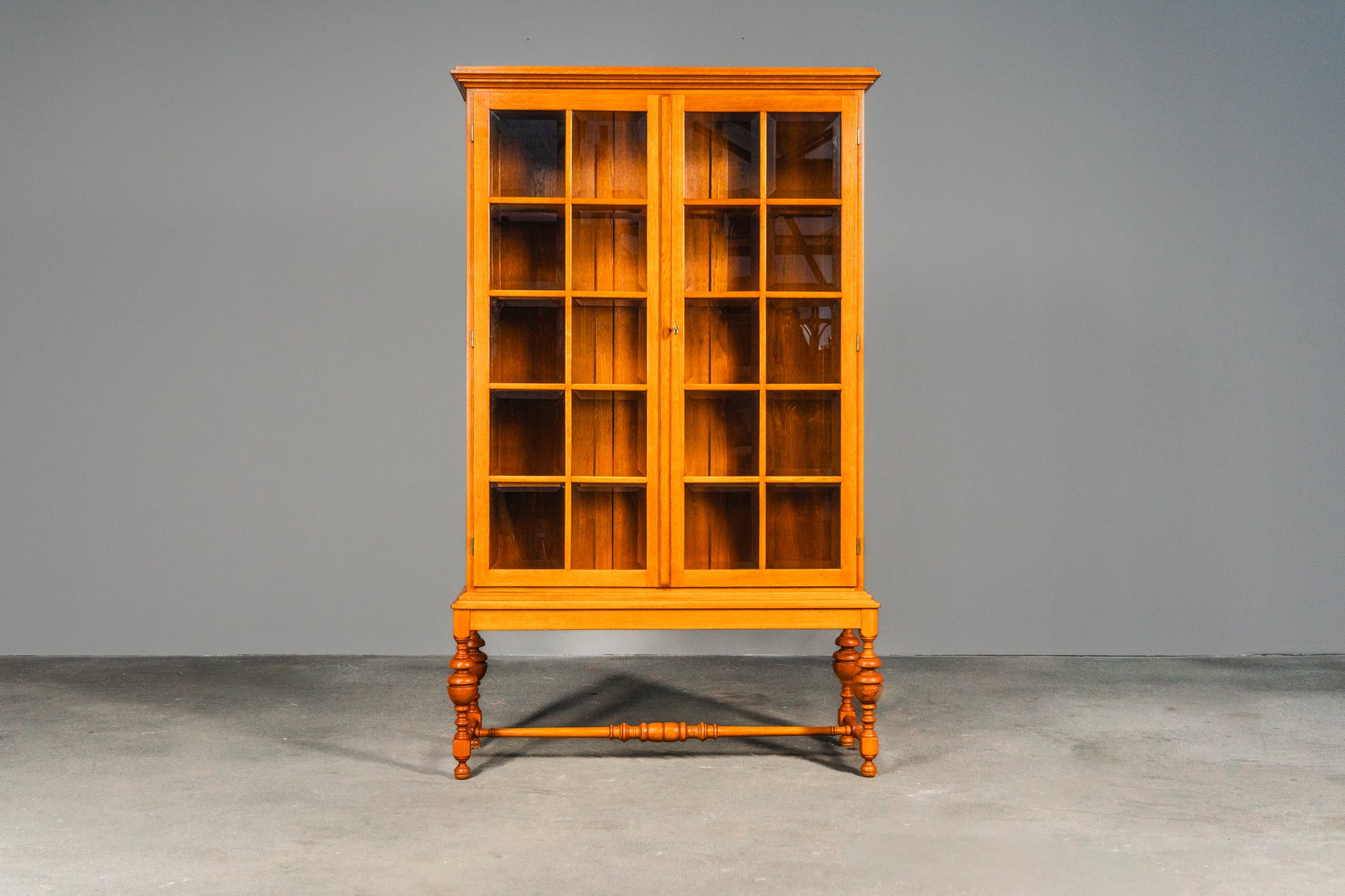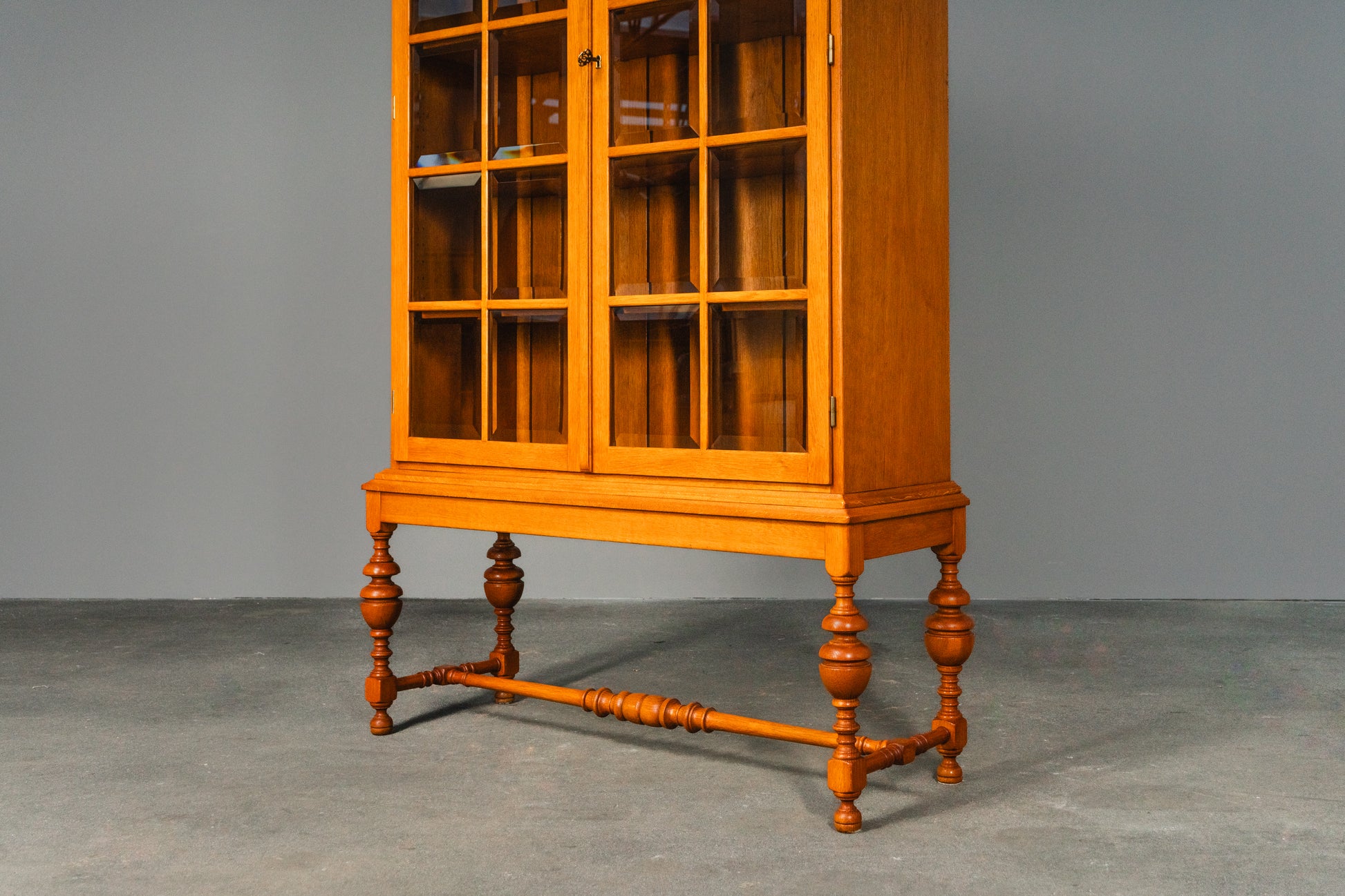 Stilvolle verglaste helle vintage Vitrine, Mitte des 20.Jahrhunderts - Eiche Schrank Regal Bücherschrank Alt Antik MÖBLINGER