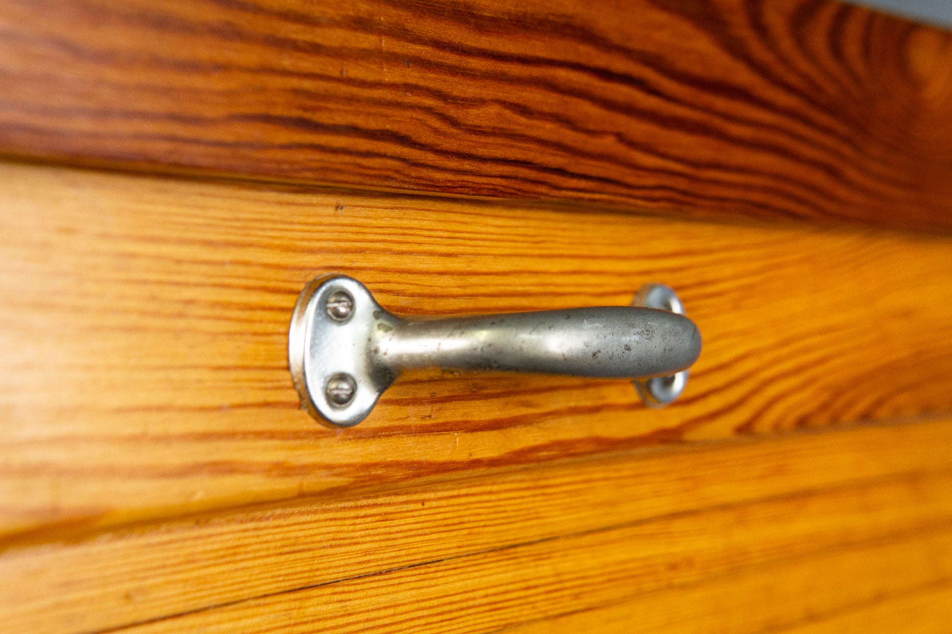 Das Möbel befindet sich in einem guten Zustand mit authentischem Erscheinungsbild und altersbedingten Gebrauchsspuren.