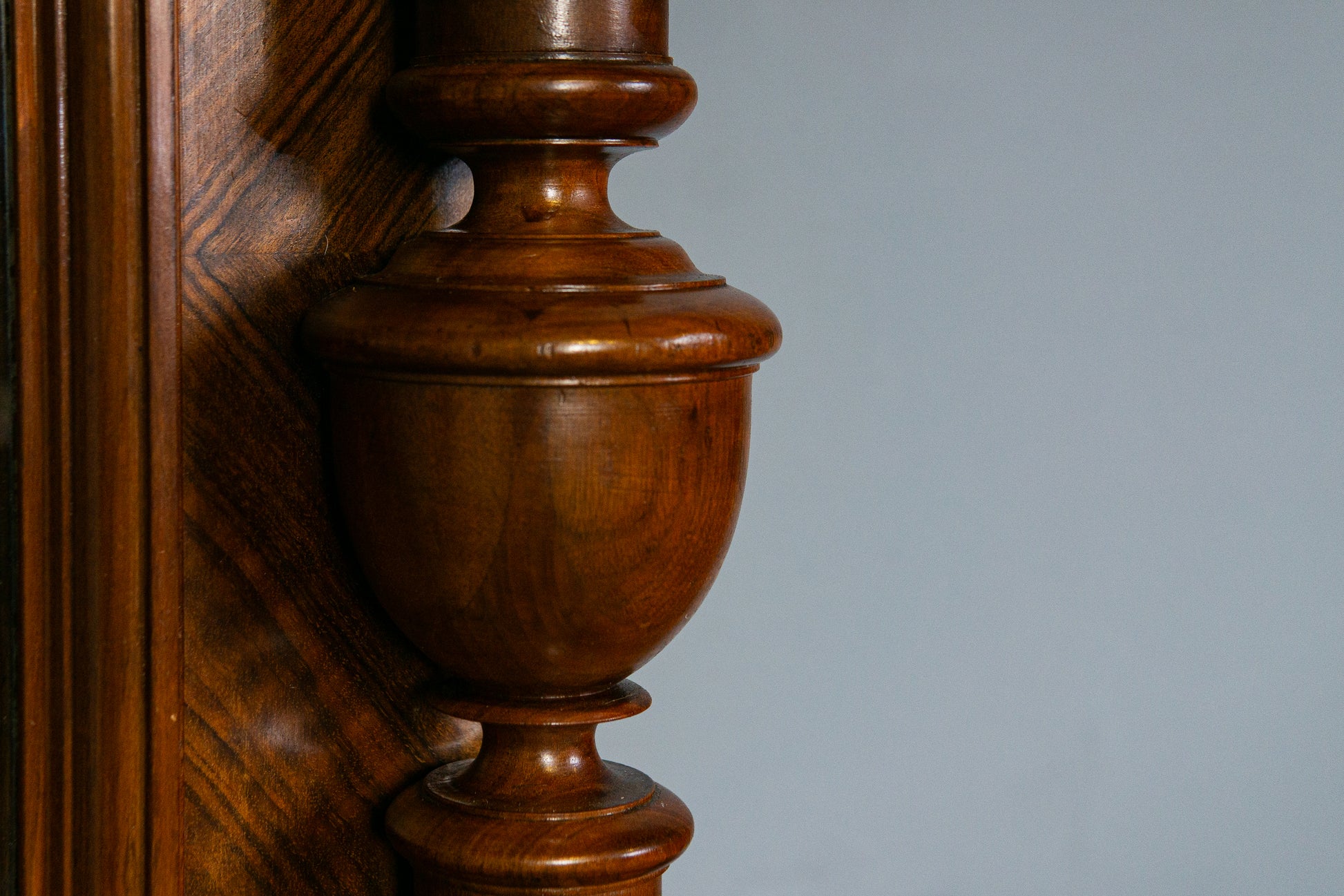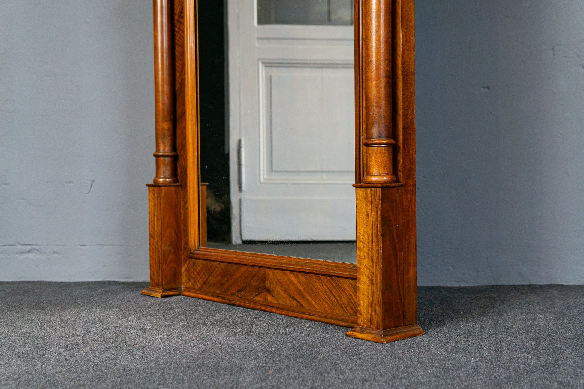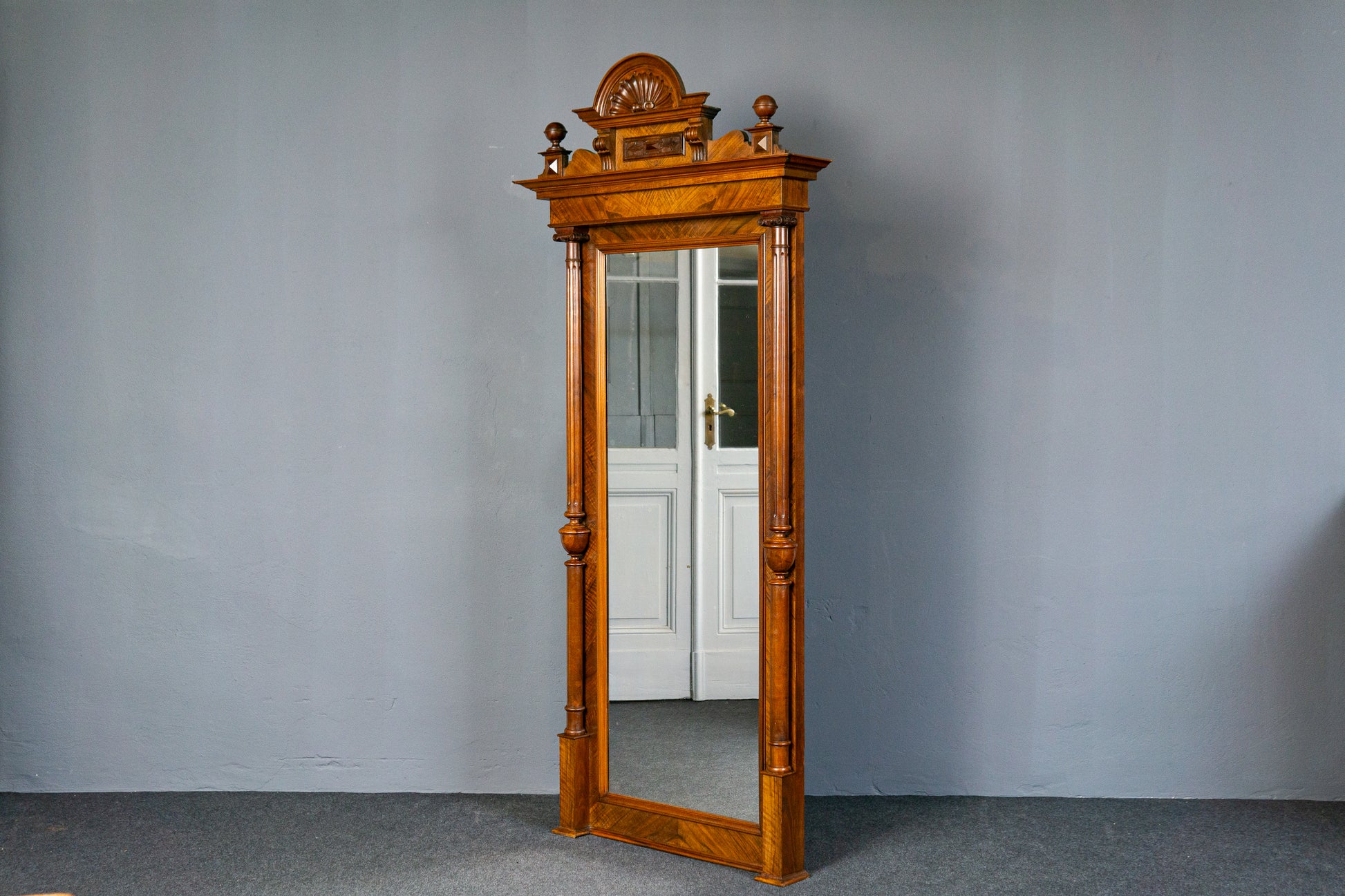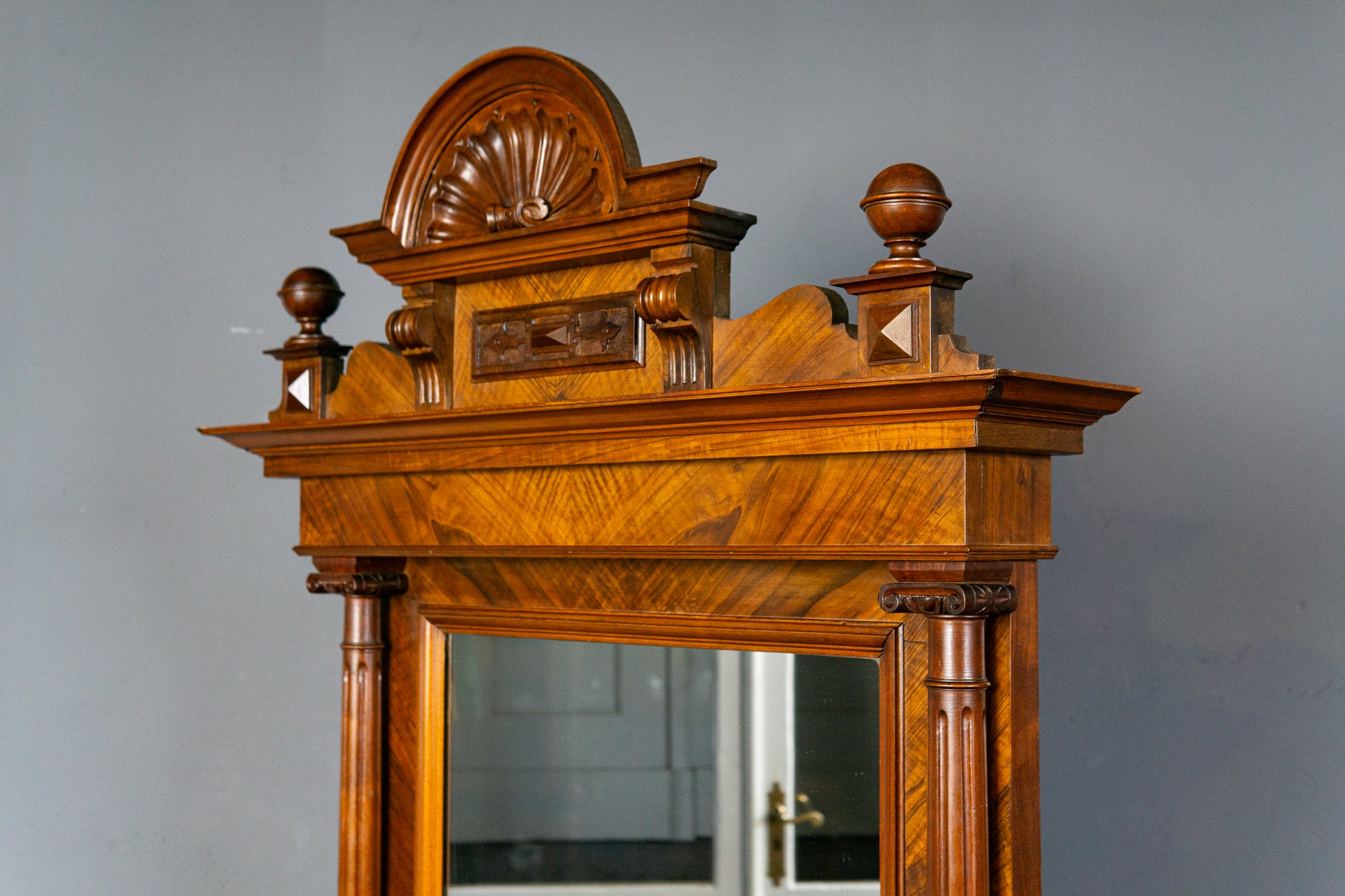 - umlaufend profilierter Spiegelrahmen, oberhalb mit Muschelbekrönung und gedrechselten Kugeln