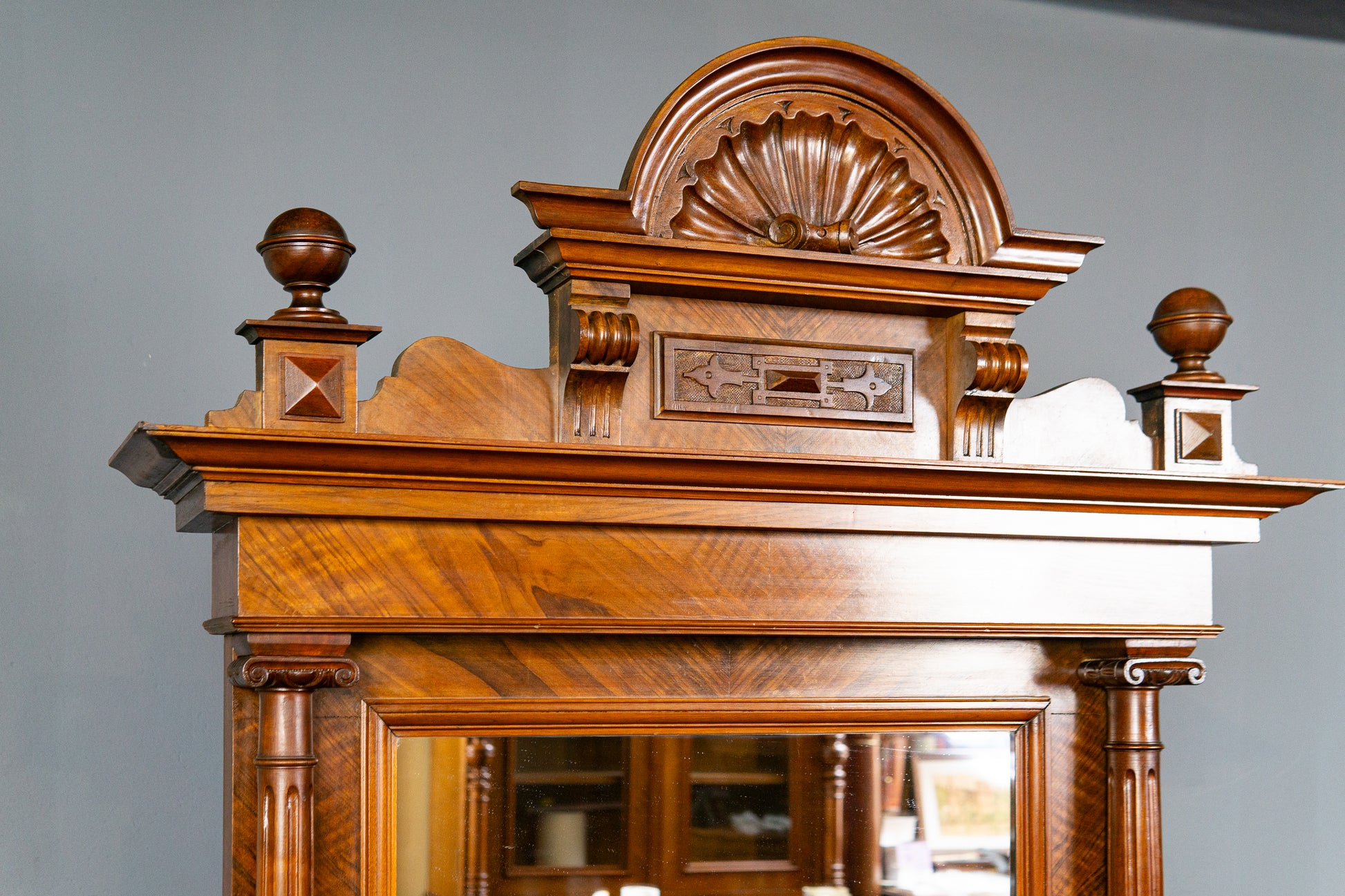 - dekoriert und verziert mit kannelierten Säulen, Muschelbekrönung und gespiegelten Furnieren
