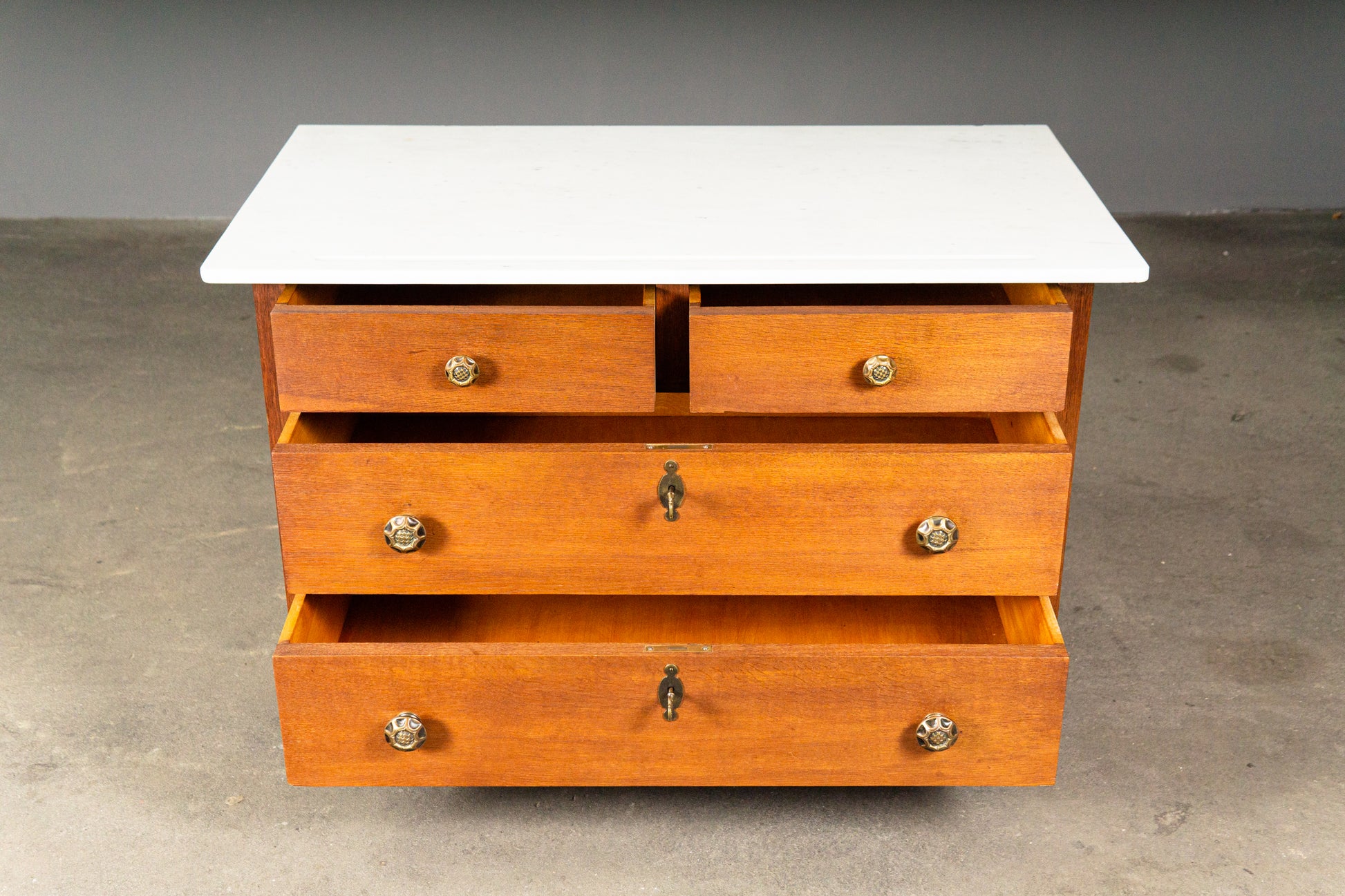Das Möbel befindet sich in einem gepflegten und funktionsfähigem Zustand mit authentischem Erscheinungsbild und altersbedingten Gebrauchsspuren.