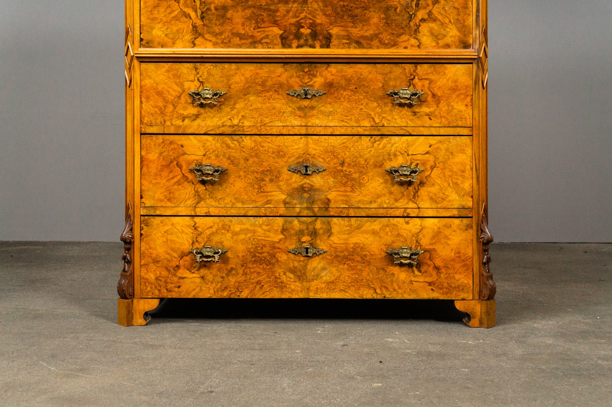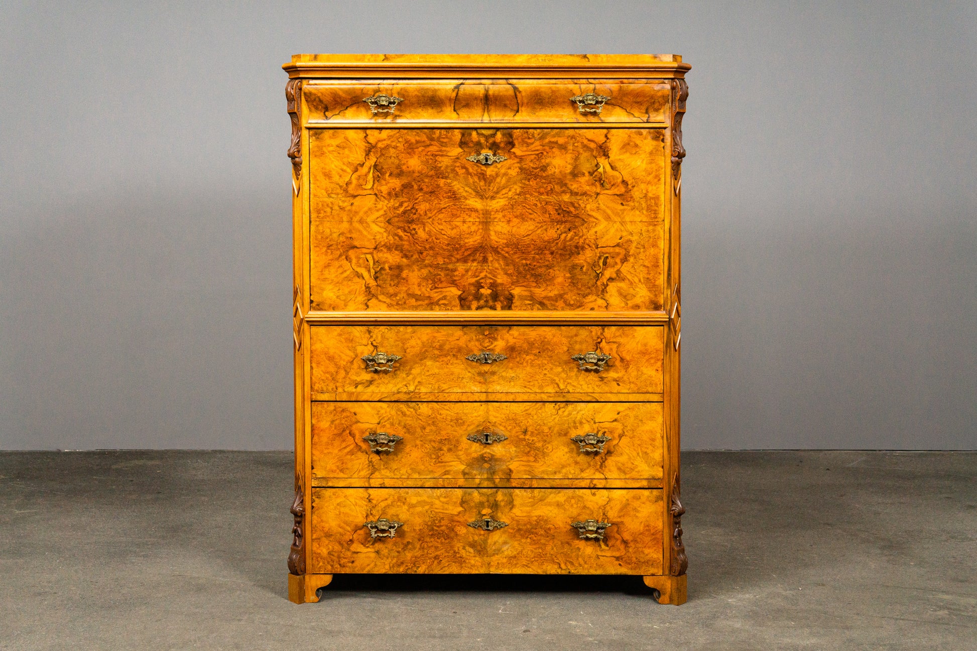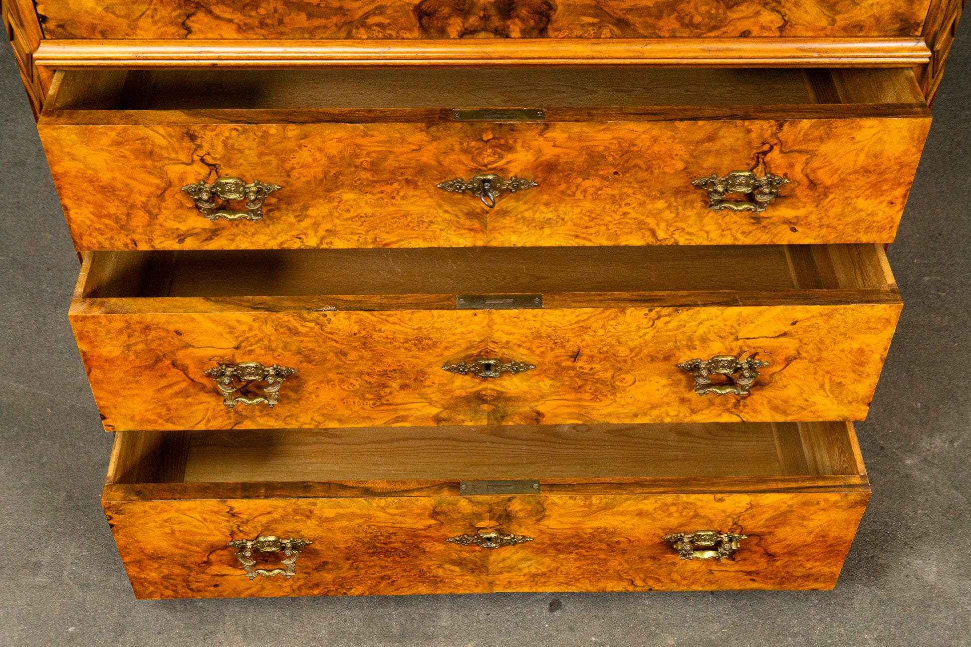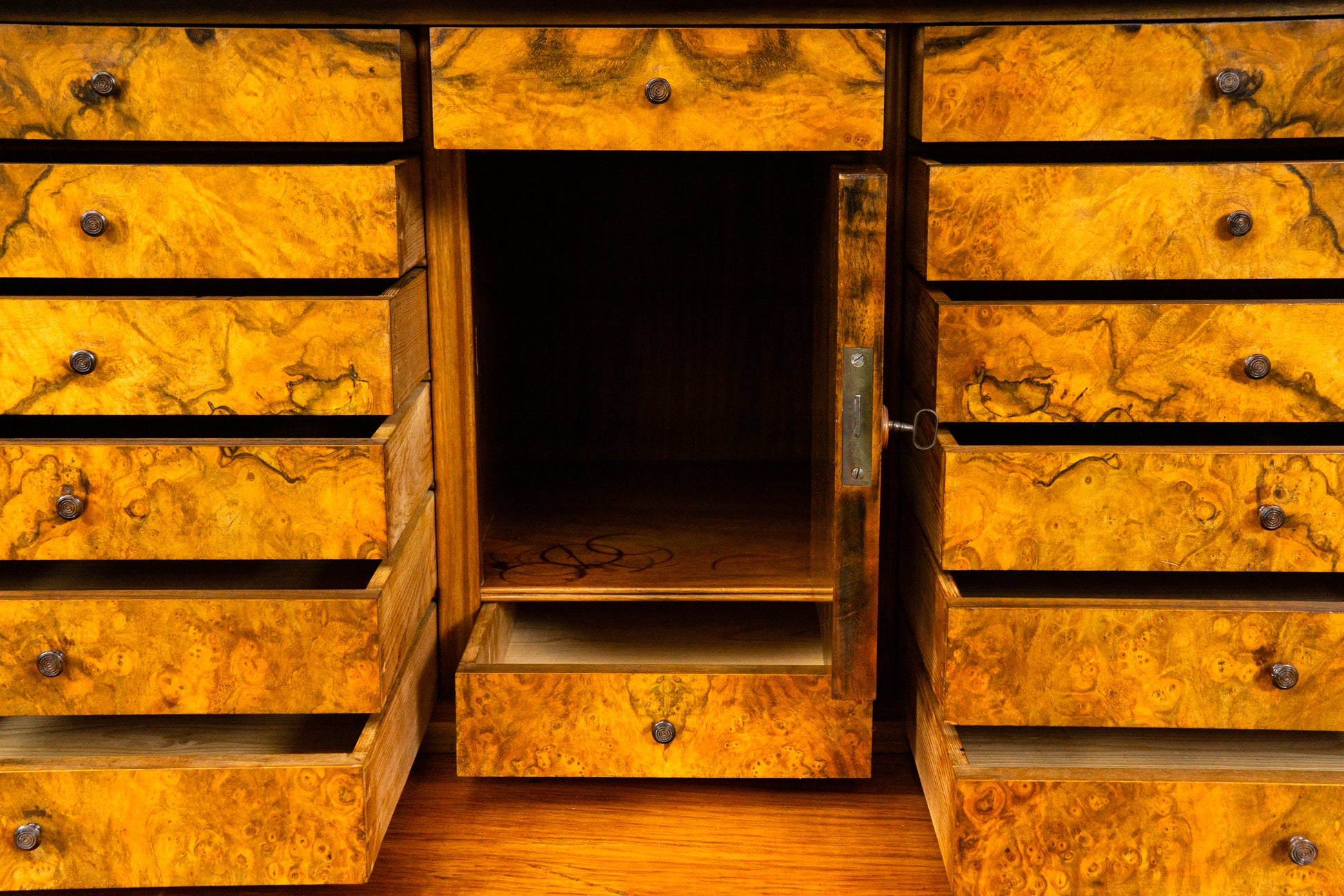 - schöne Furnierauswahl, frontseitig in Nussbaumwurzel gespiegelt