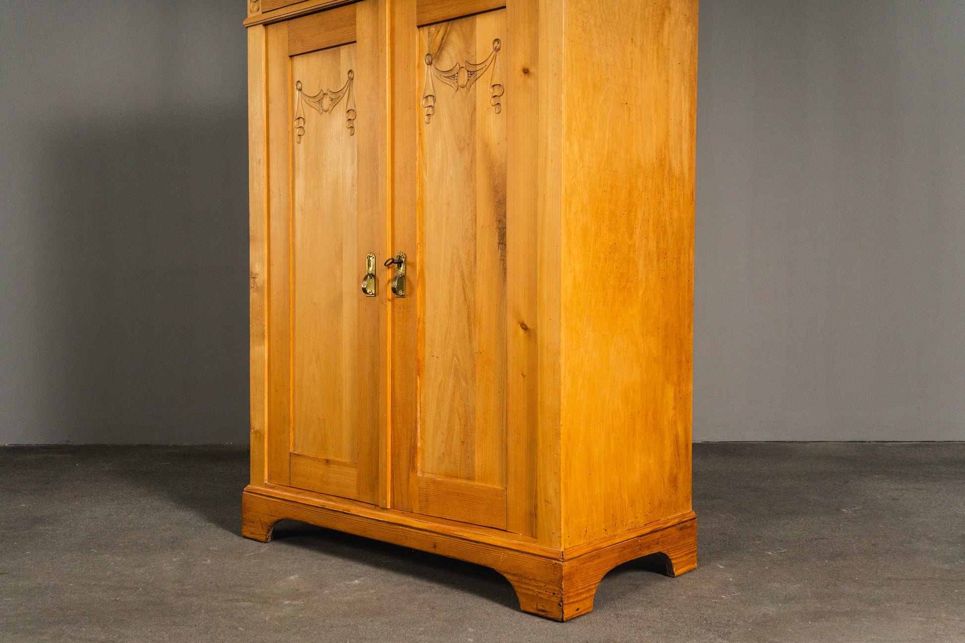 - Vollholzkonstruktion in Birke und Kiefer furniert, teilweise massiv